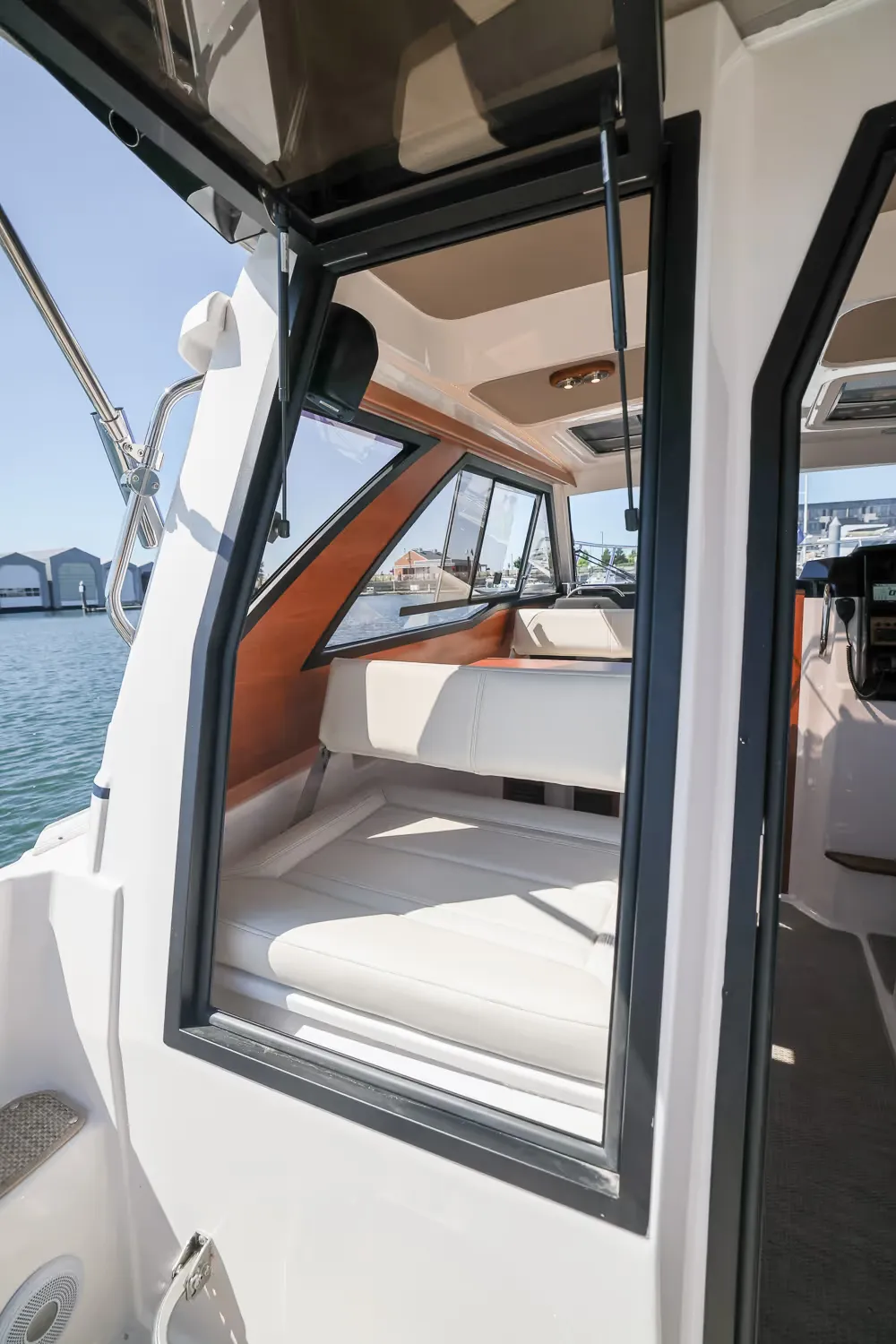 Opening glass bulkhead w/ reversible seat