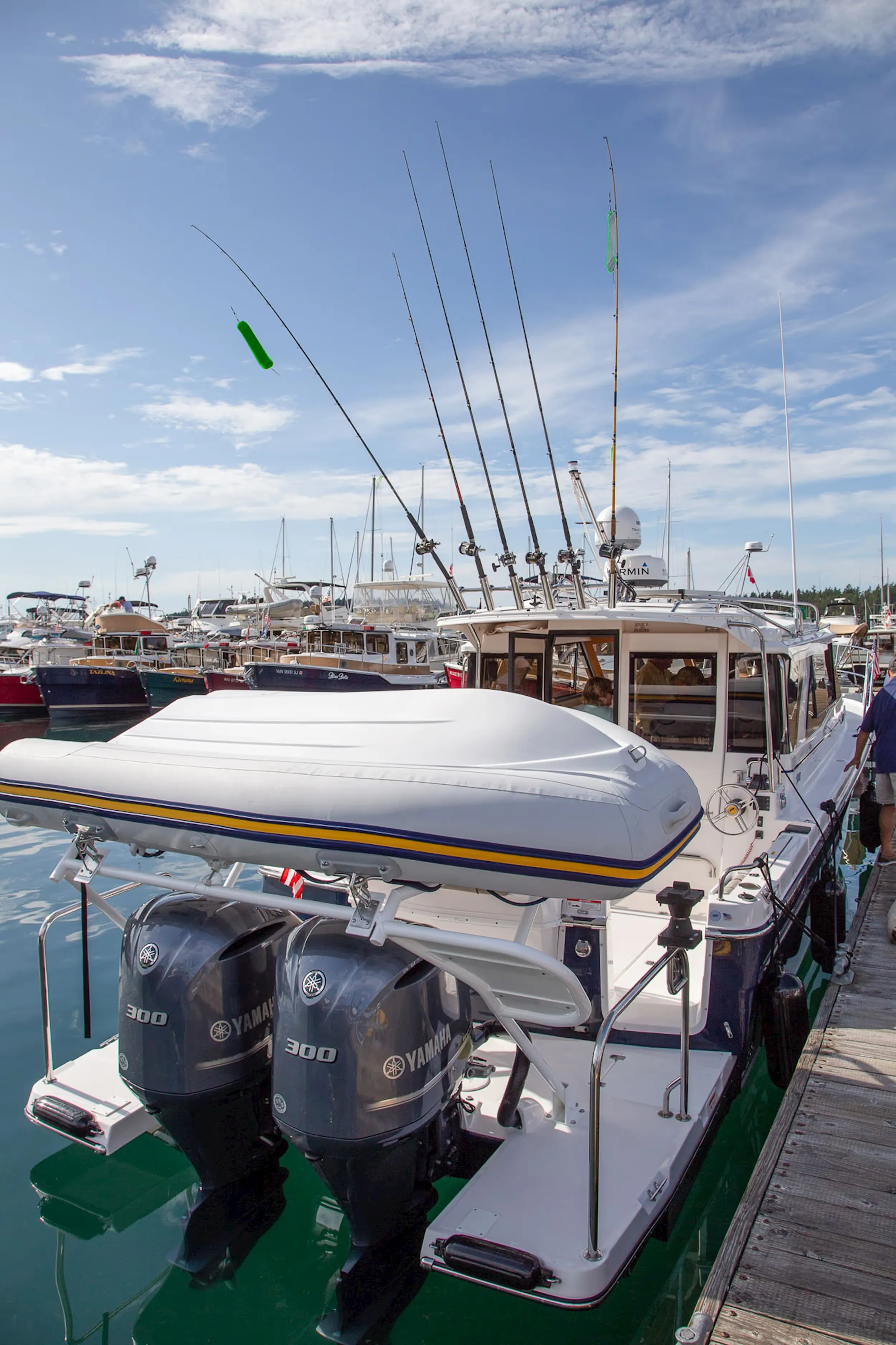 Twin 300 HP Yamaha outboards w/ Helm Master EX joystick control, electric steering (DES)