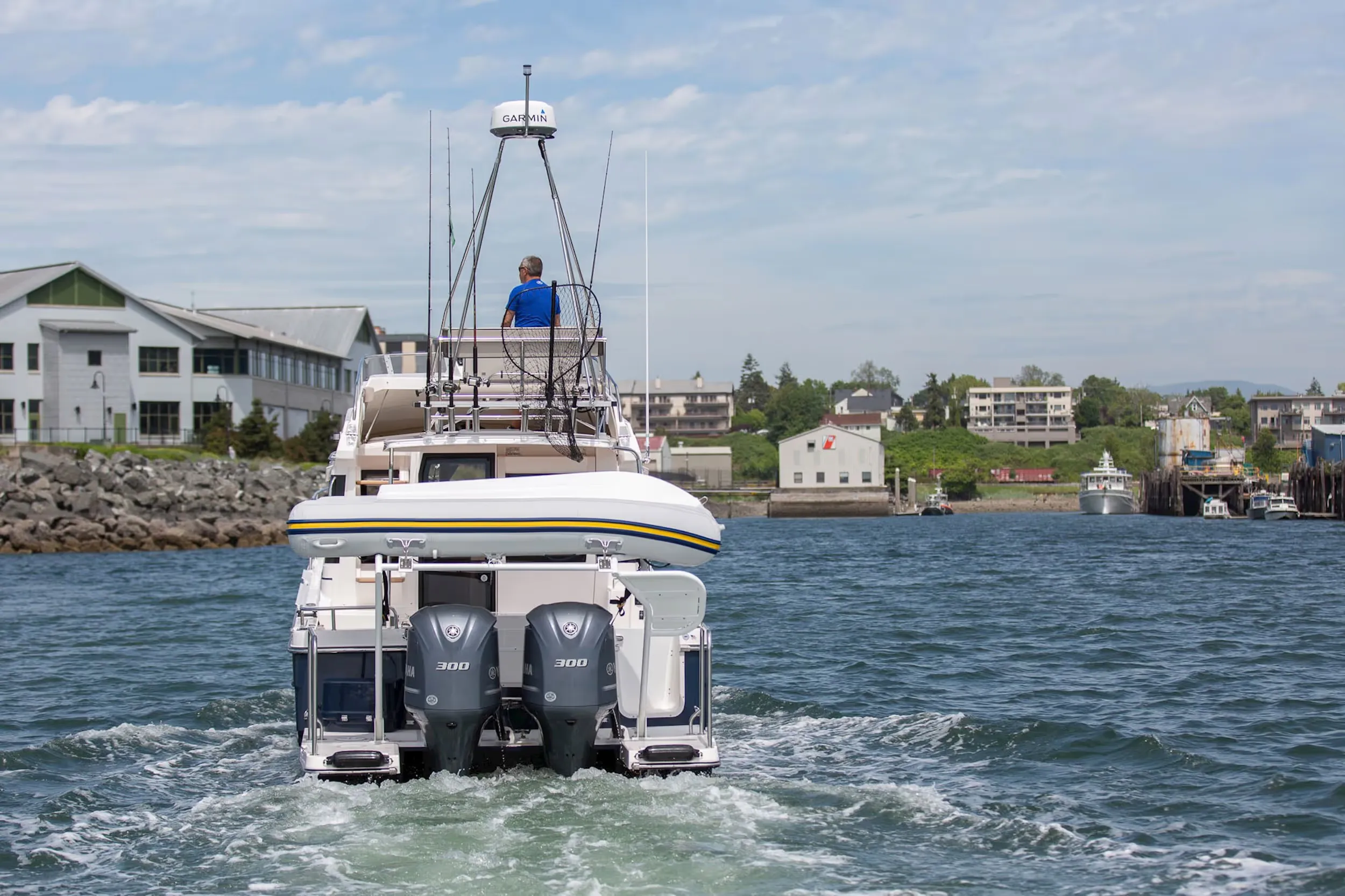 Twin 300 HP Yamaha outboards w/ Helm Master EX joystick control, electric steering (DES)