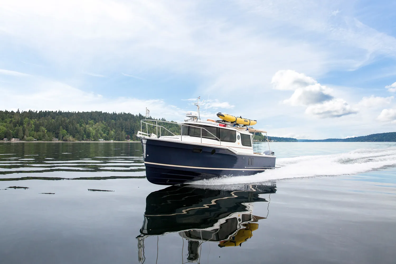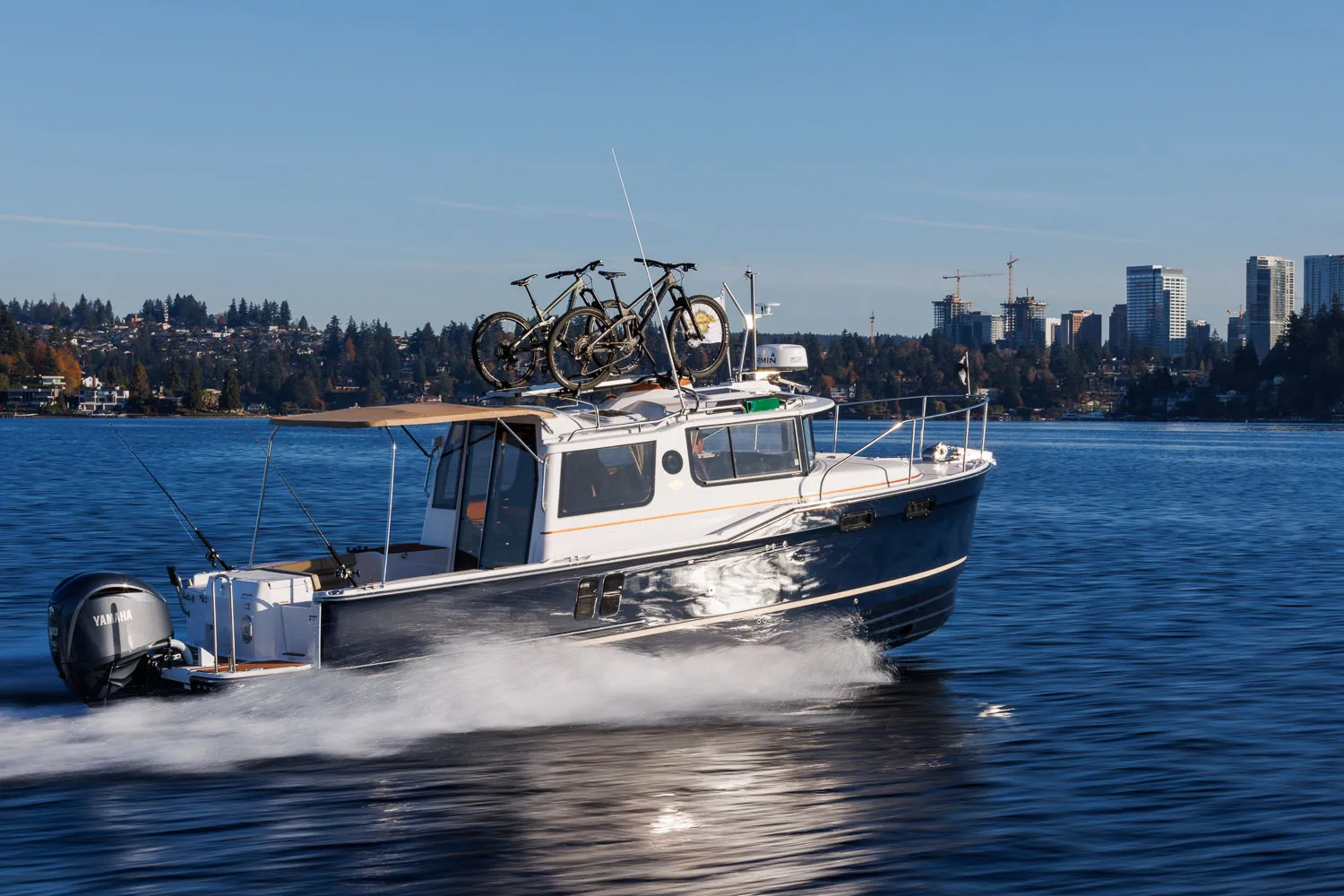 Cruising without compromise is the name of the game for the R-27 from Ranger Tugs. Straight from the factory, your new R-27 will be outfitted to cruise, fish, and play in comfort and style. Powered by the efficient and popular Yamaha F350 outboard motor, the new R-27 doesn’t waste time delivering you and your family to your next adventure. Enjoy peace of mind knowing that the included Garmin 8612xsv chartplotter will guide you safely on your passage and that when you arrive, the bow thruster will make docking a non-event.