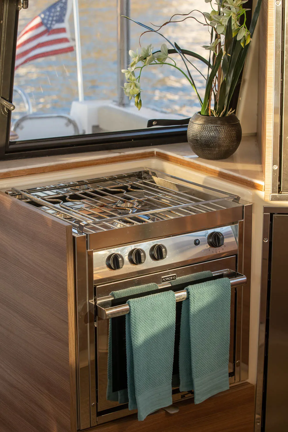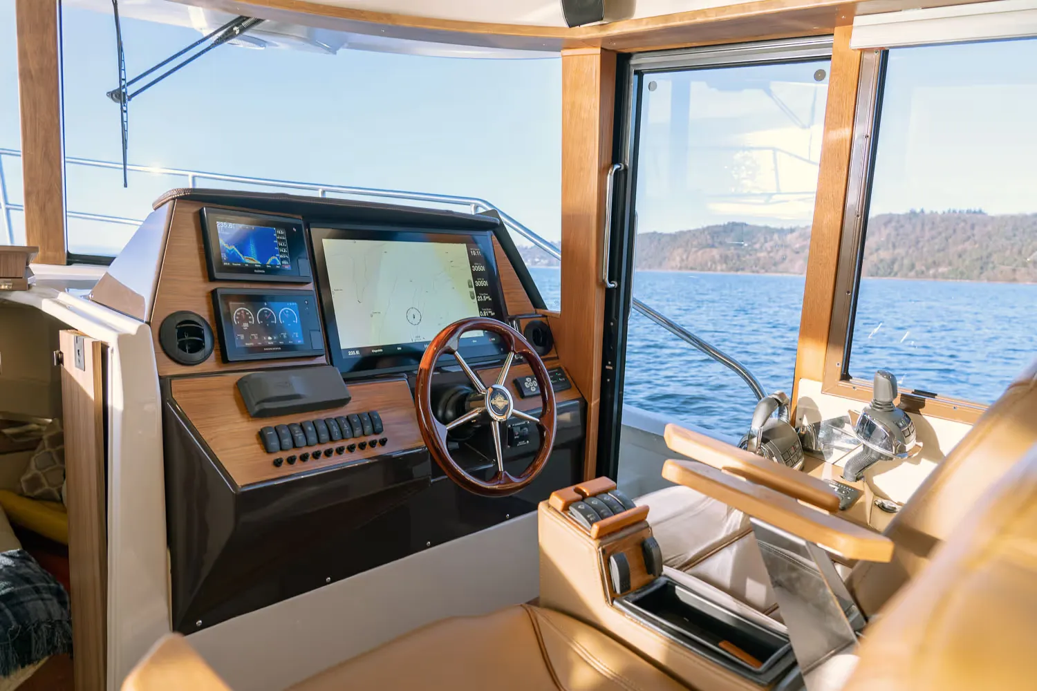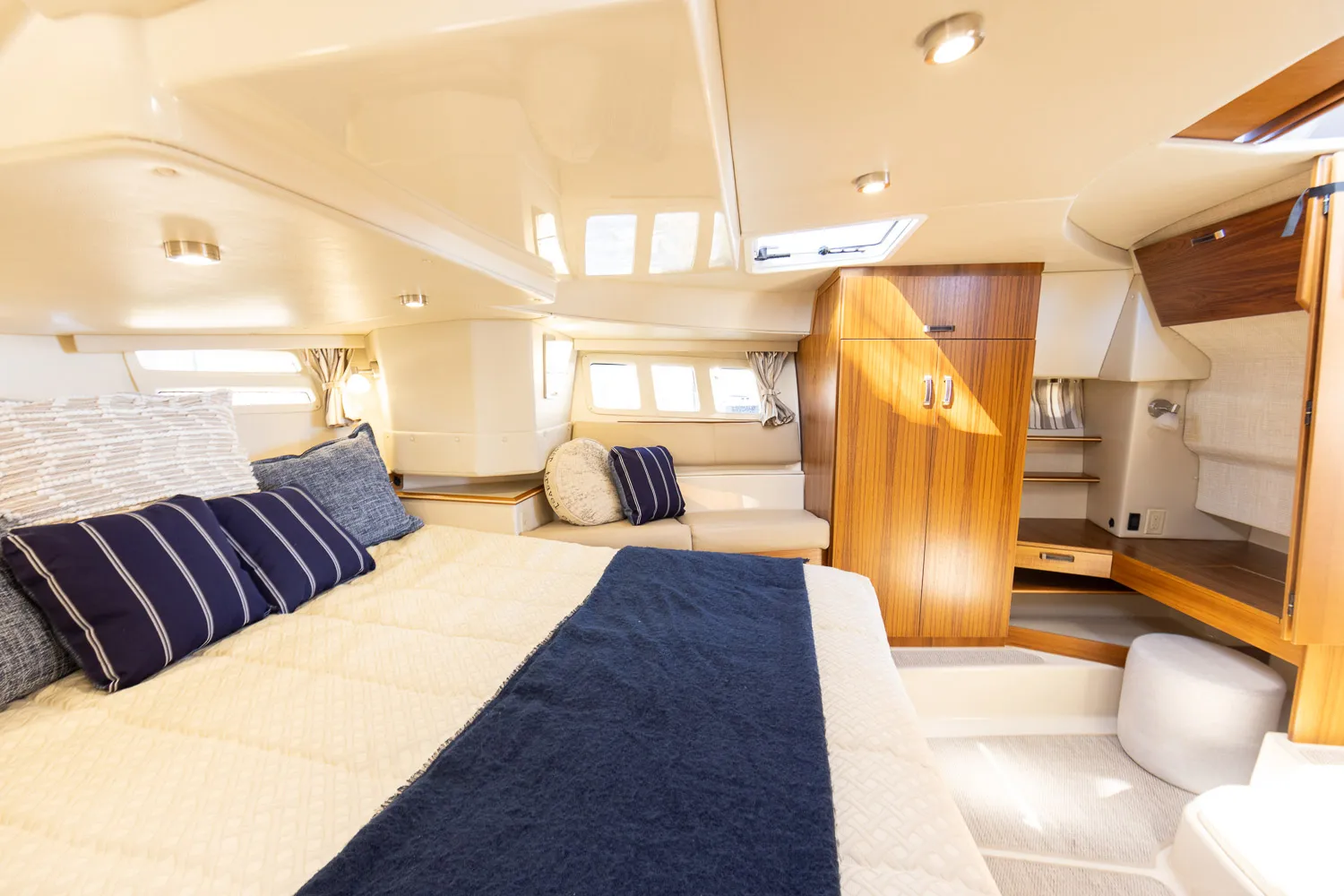 The R-43 Sedan is thoughtfully equipped with many innovative features that will make your life on the water stress free and fun like it’s supposed to be. Designed and built by hand in the USA, the R-43 S will turn heads and collect fans everywhere you go. The heart of the R-43 Sedan is its spacious, light-filled salon; with a conversational layout and seating for 12, you’ll make a lifetime’s worth of memories with friends and family in this warm, inviting space. With two private staterooms, each with en suite head and shower, there’s plenty of room to comfortably entertain guests.