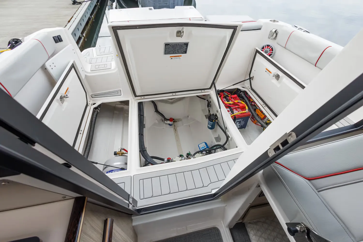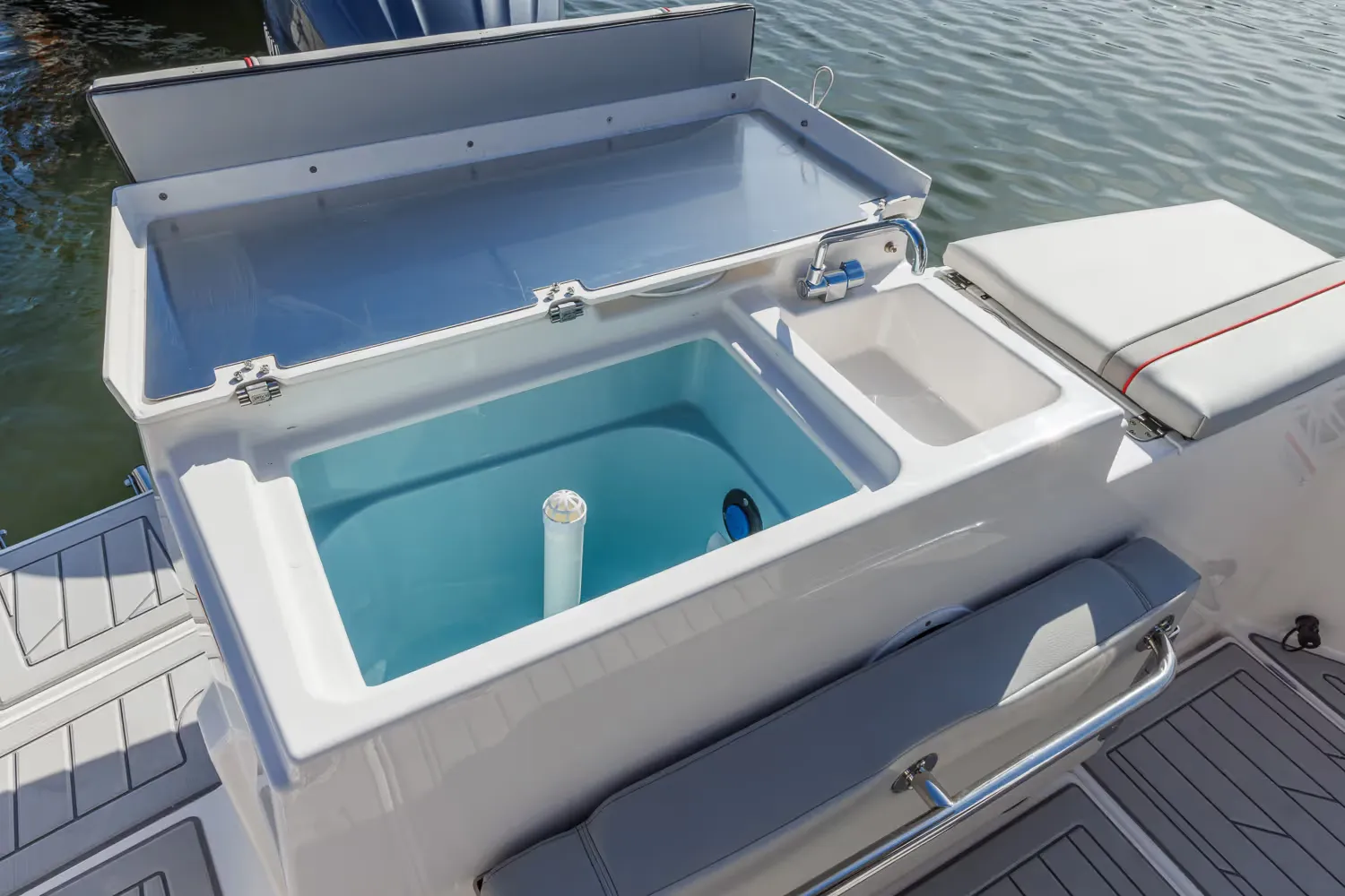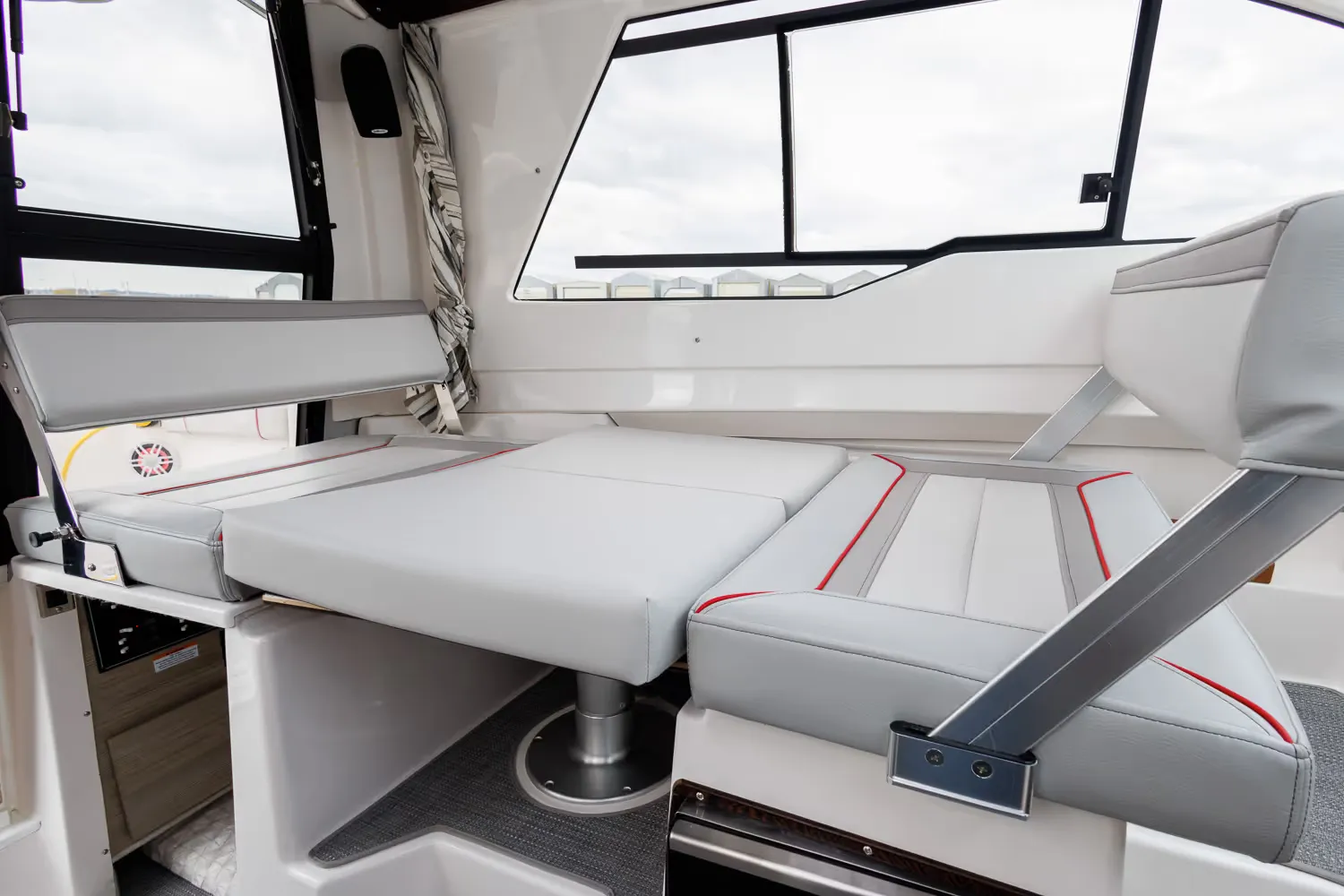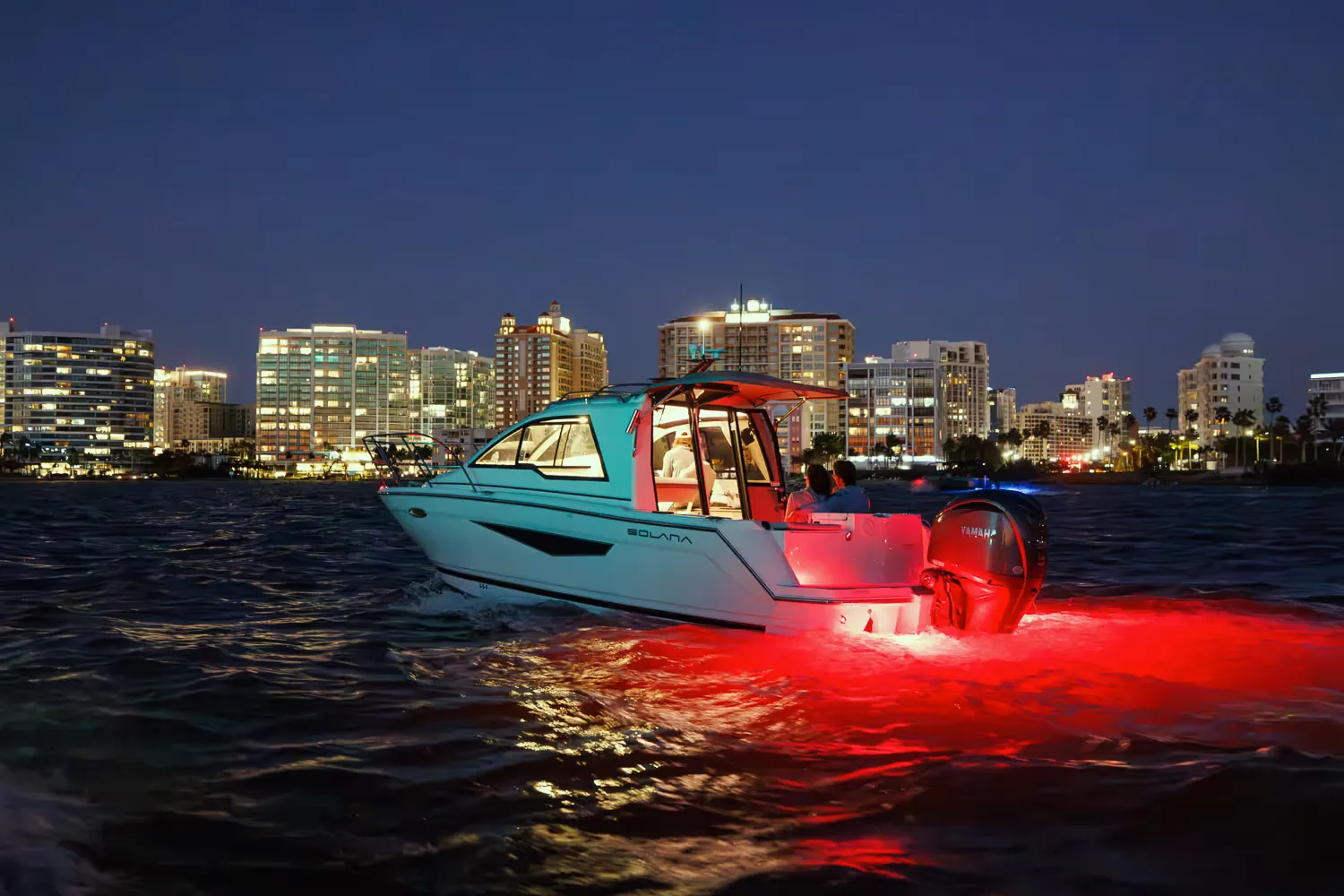 The Solara S-250 Coupe is a fully loaded luxury pocket cruiser perfect for overnighting, fishing, watersports, and day cruising. The S-250 C includes many of the amenities found on larger yachts, in a compact package. Meal prep is fun and easy in the full galley featuring a stainless-steel sink with hot and cold water, refrigerator/freezer, stove top, microwave, and plenty of storage space. This comfortable cruiser even has a private stateroom with an enclosed head and shower!