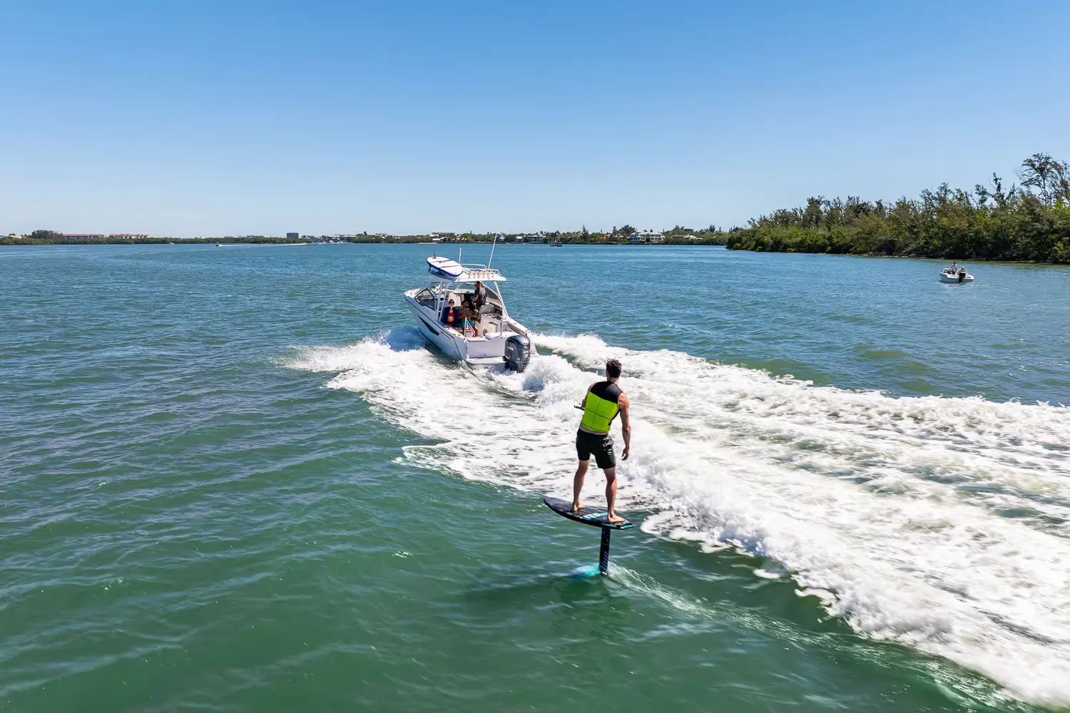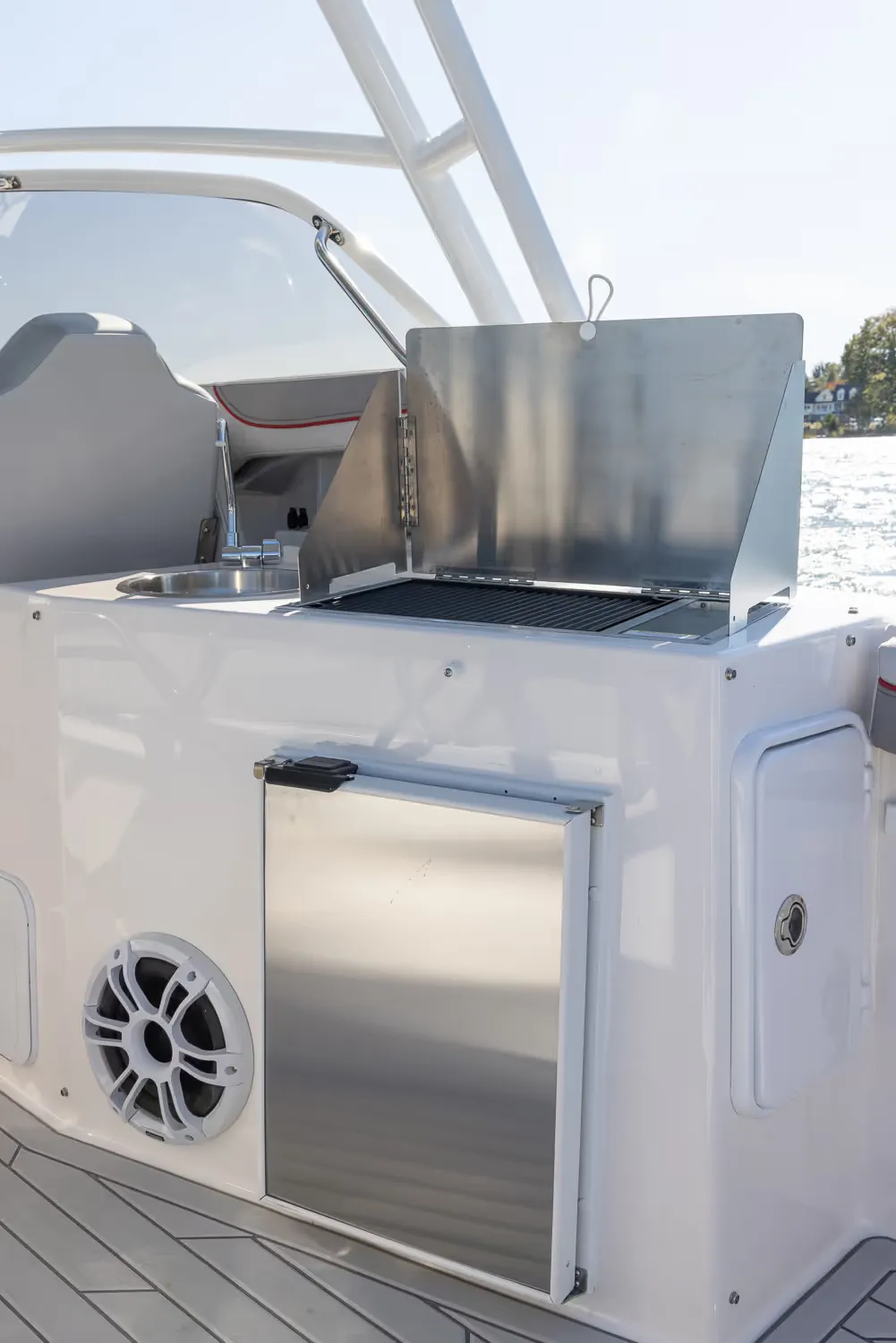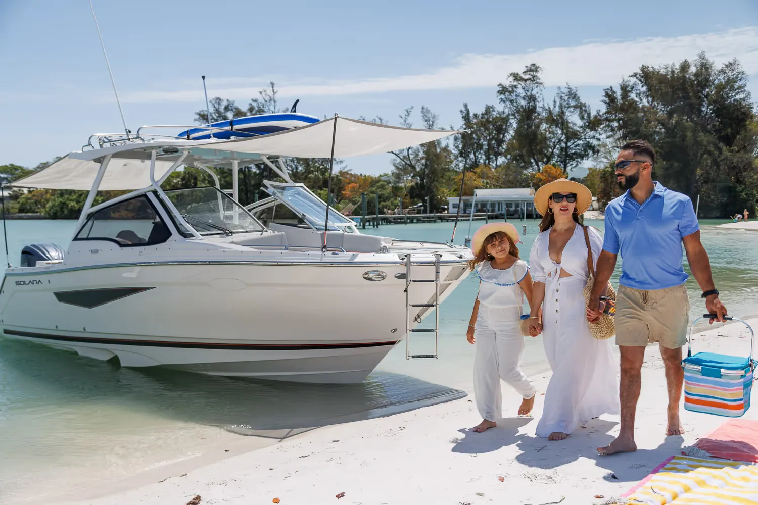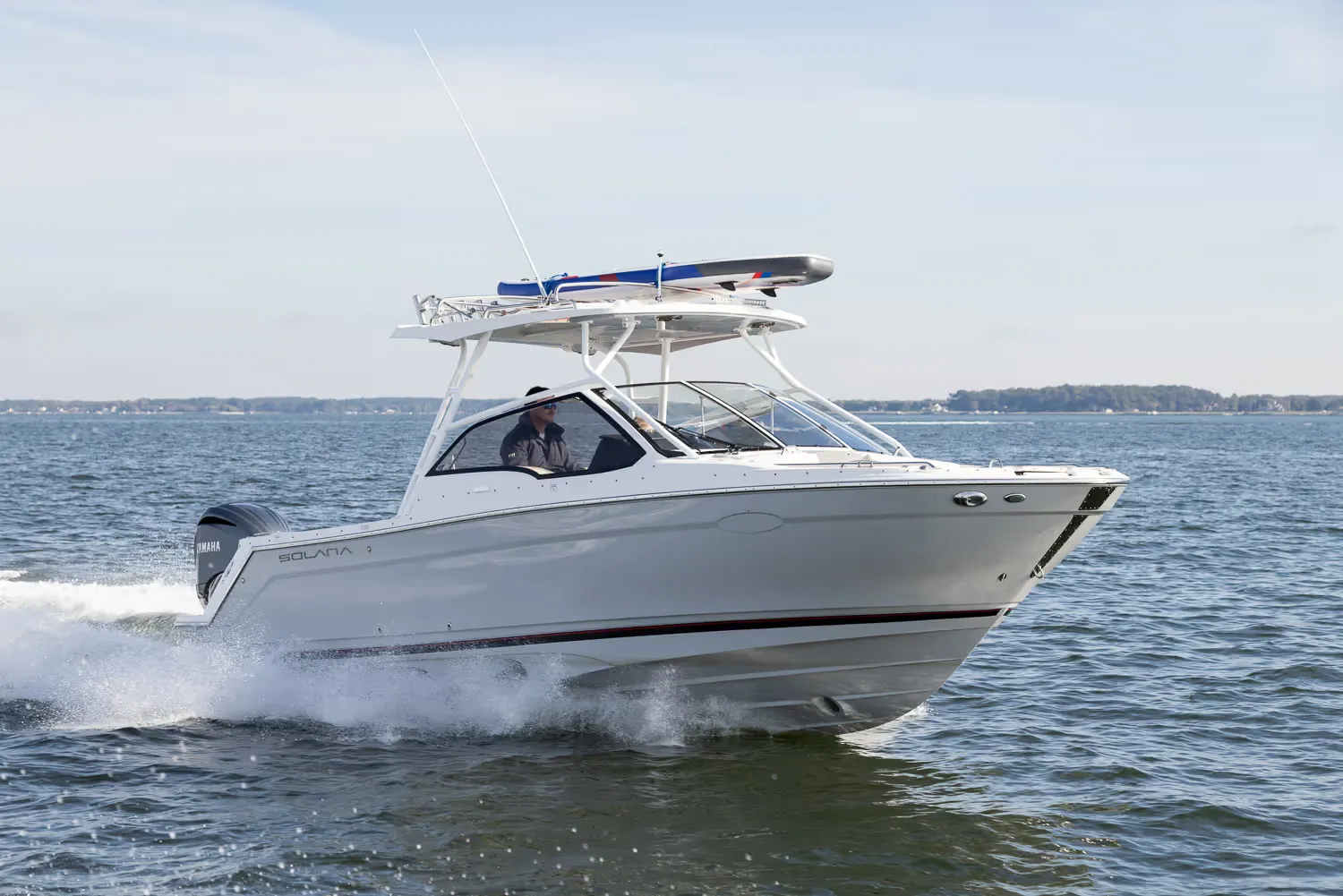 Solara’s S-250 Dual Console is just as comfortable blasting around the lake with the kids in tow, as it is gliding along the shoreline for a sunset cruise. Designed and built to be a master of multiple functions, the S-250 DC provides exceptional versatility. Whether you’re fishing, enjoying watersports, sightseeing, or entertaining guests, the S-250 DC opens up a new world of exciting possibilities. Powered by a Yamaha 300, she is fast, efficient and fun.