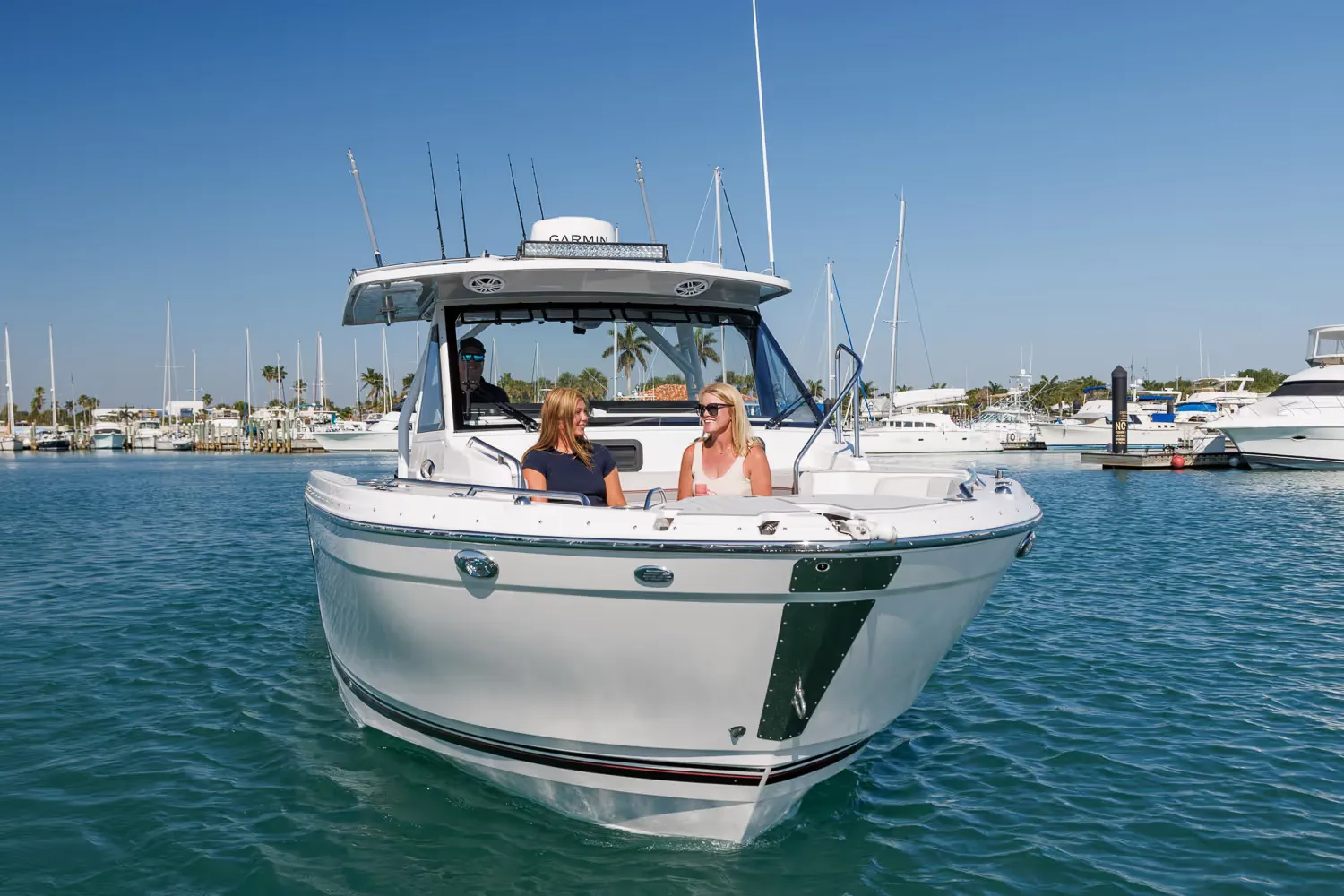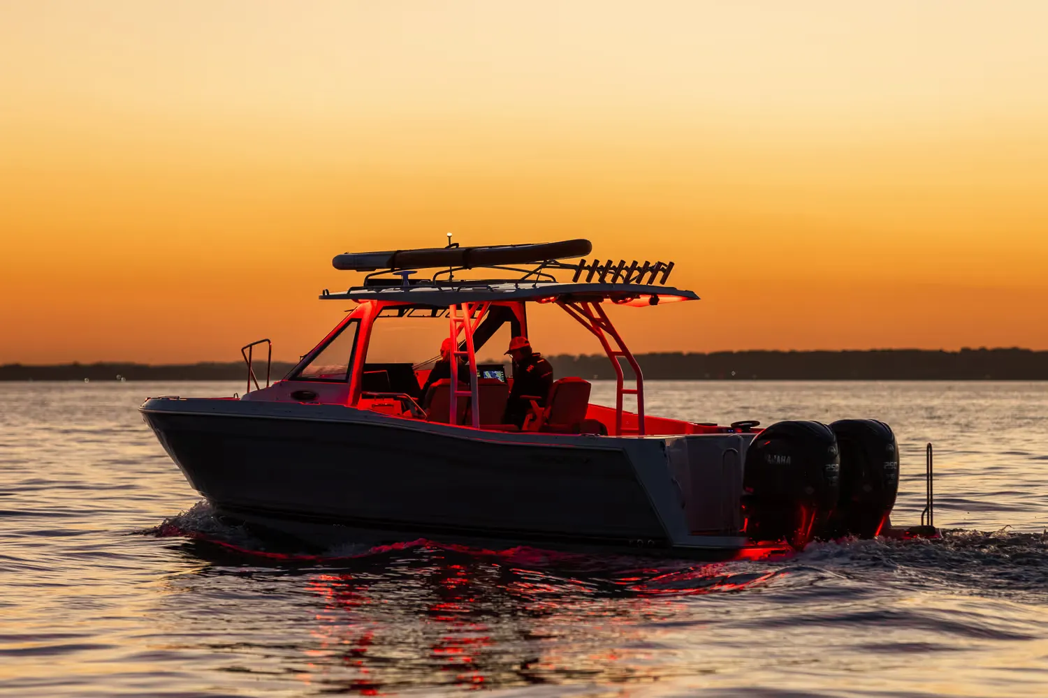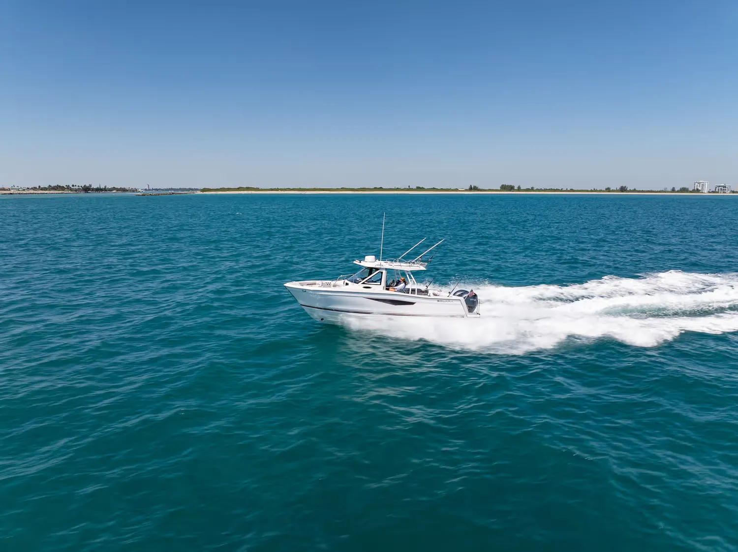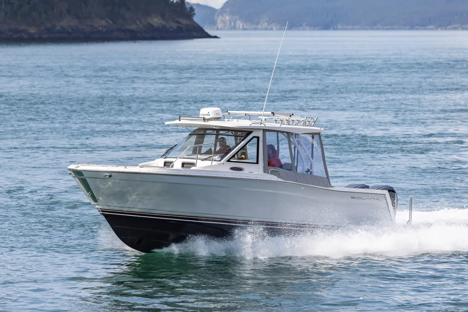 The S-310 Center Walkaround brings unmatched versatility in an agile and sporty platform. Built to excel at fishing, overnighting and entertaining guests in style, you’ll find features to enhance every experience. Powered by twin Yamaha F300 outboards, the S-310 CW delivers exceptional performance and speed. Quick planing ability and high efficiency are afforded by an advanced double stepped hull. Our uniquely designed Laminar Flow Interrupters provide outstanding cornering ability. The deep V forward and tapered bow flare allow the S-310 CW to handle rough water with ease.
