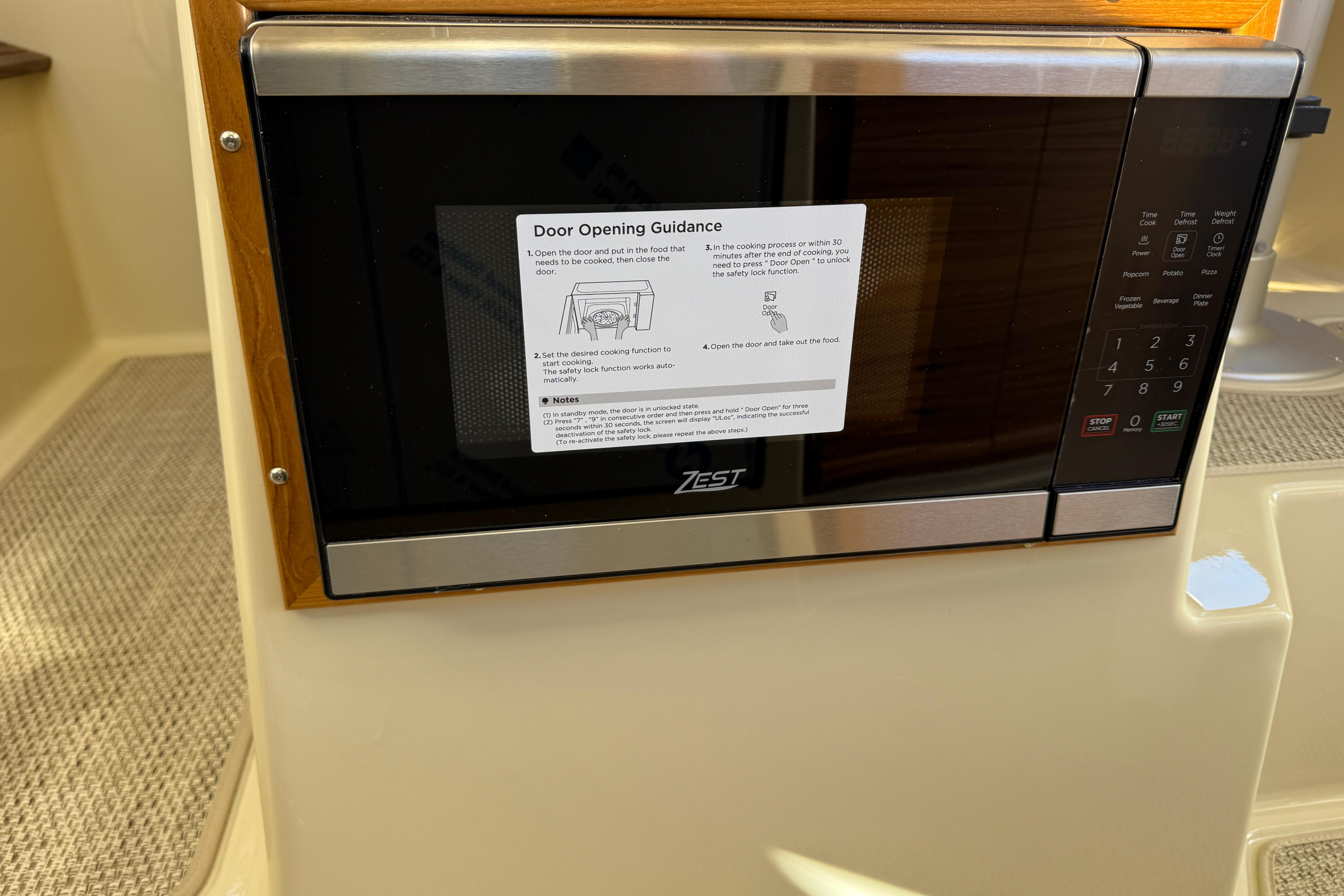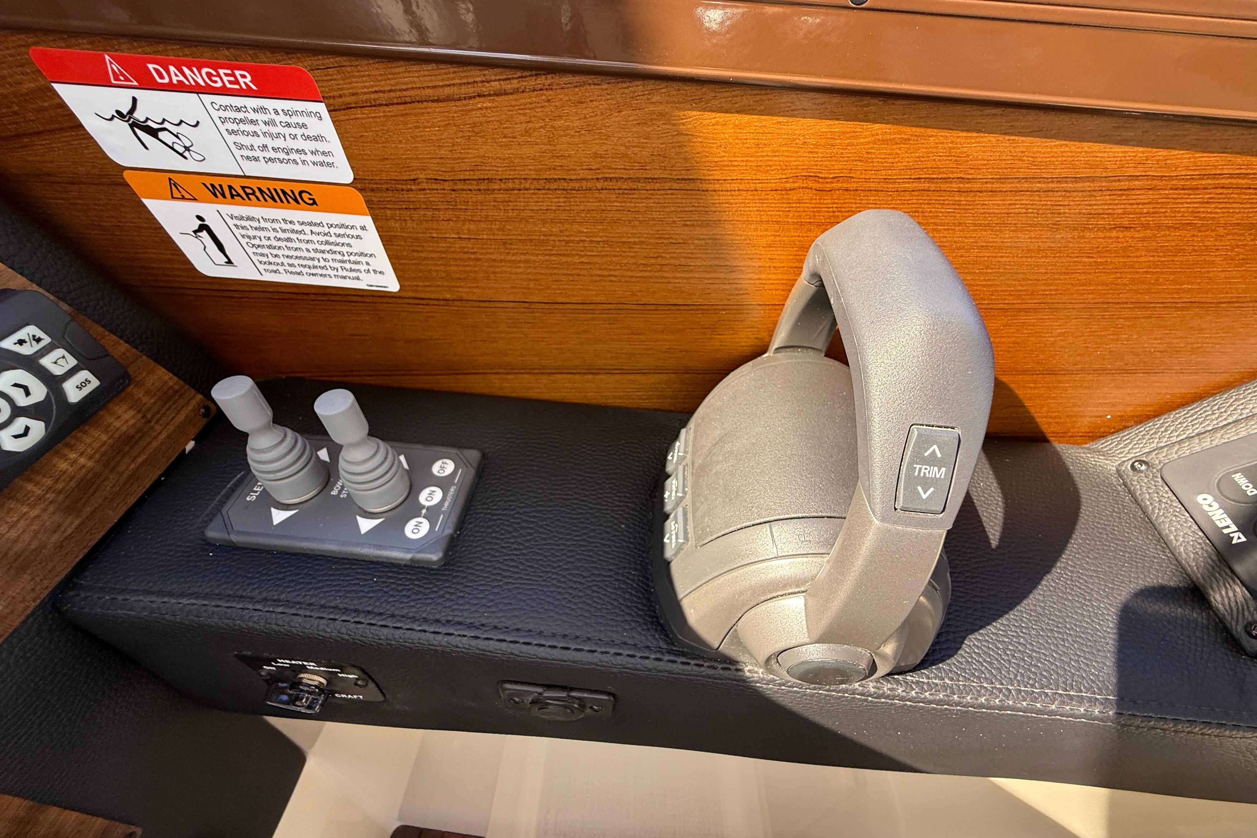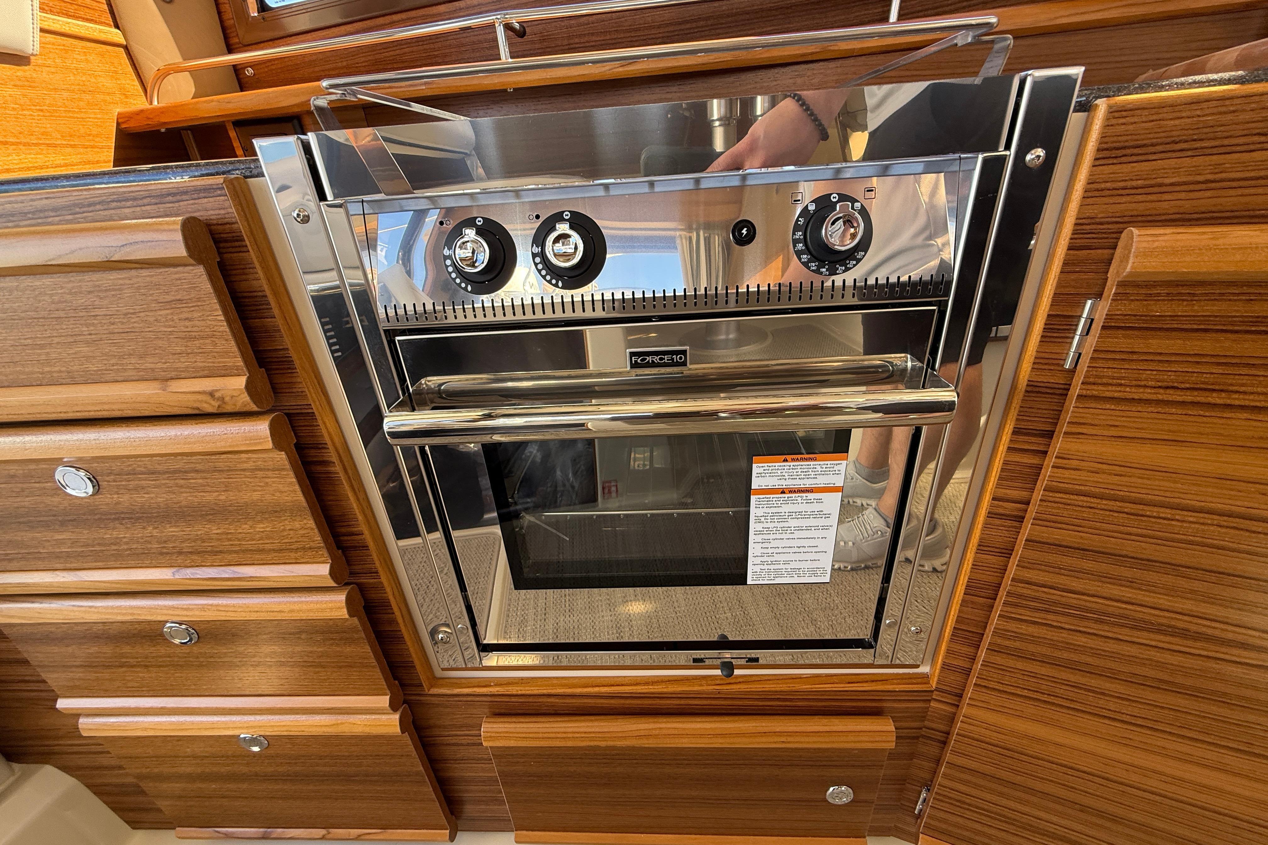 The cockpit is versatile and well-laid out, with seating options, storage, and easy access to the swim platform. It works just as well for entertaining as it does for fishing or anchoring out.