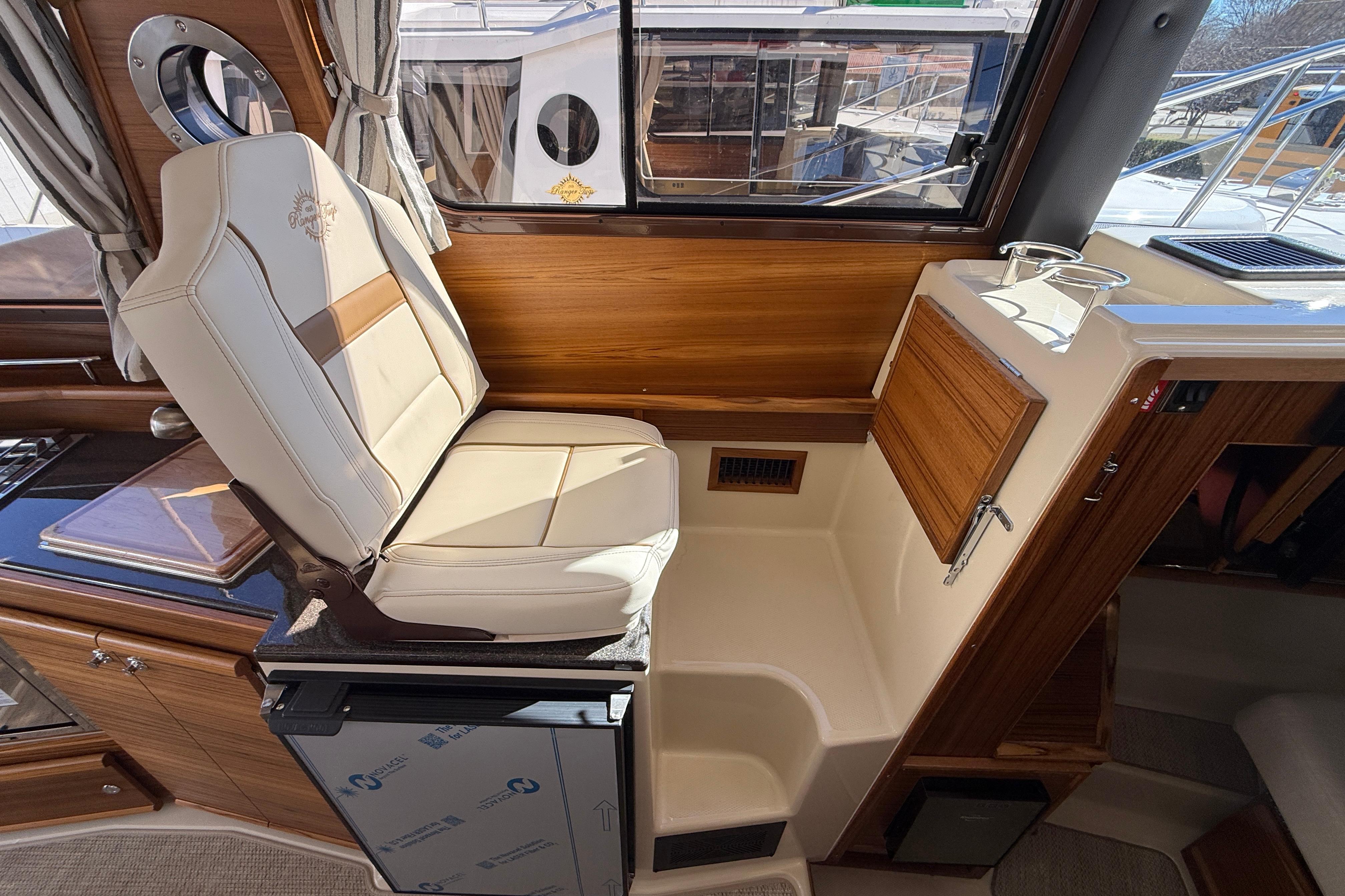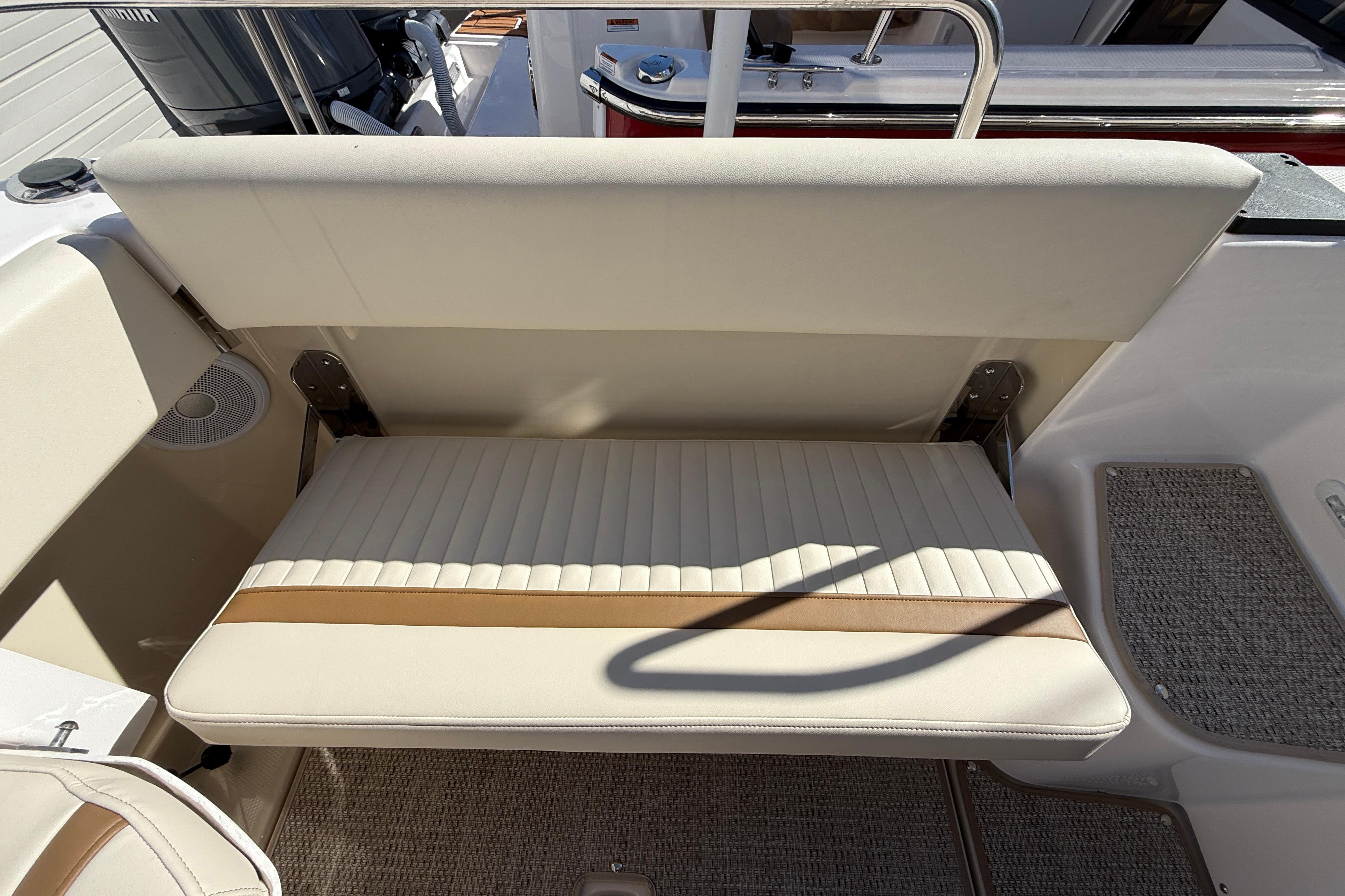 The command bridge adds a second helm with great visibility and comfortable seating for cruising or relaxing at anchor. It’s a big advantage for boaters who enjoy running from up top or want additional outdoor space.