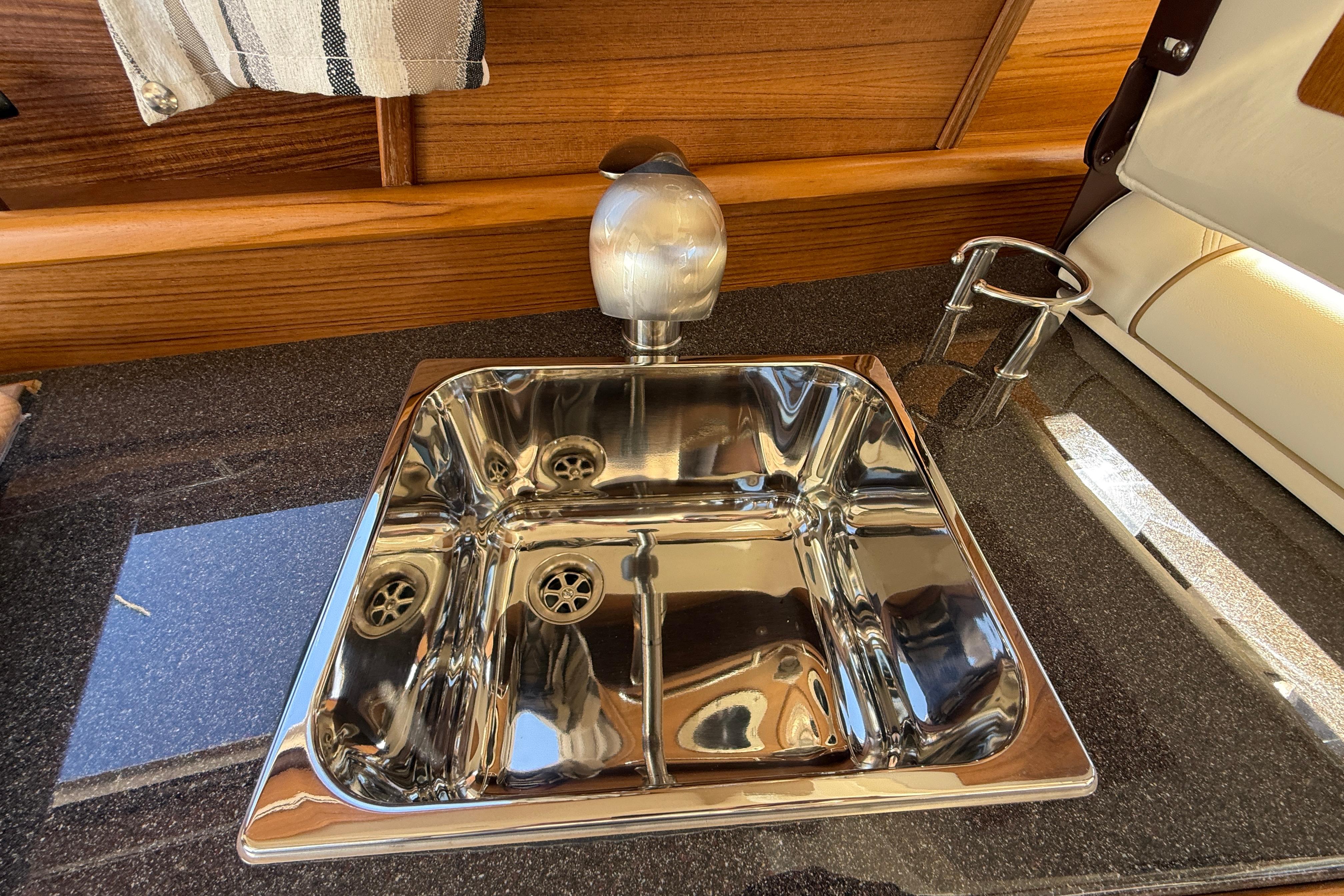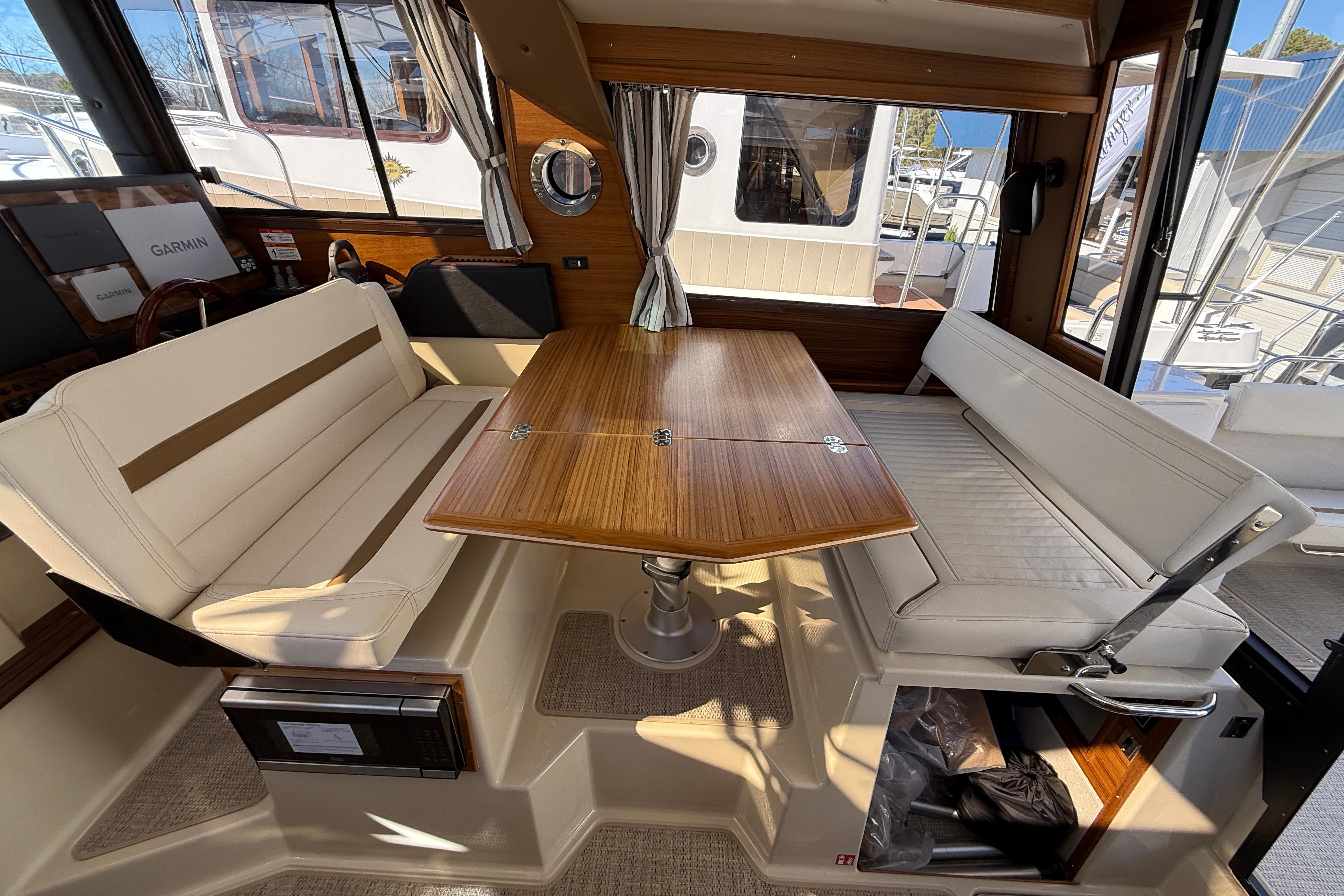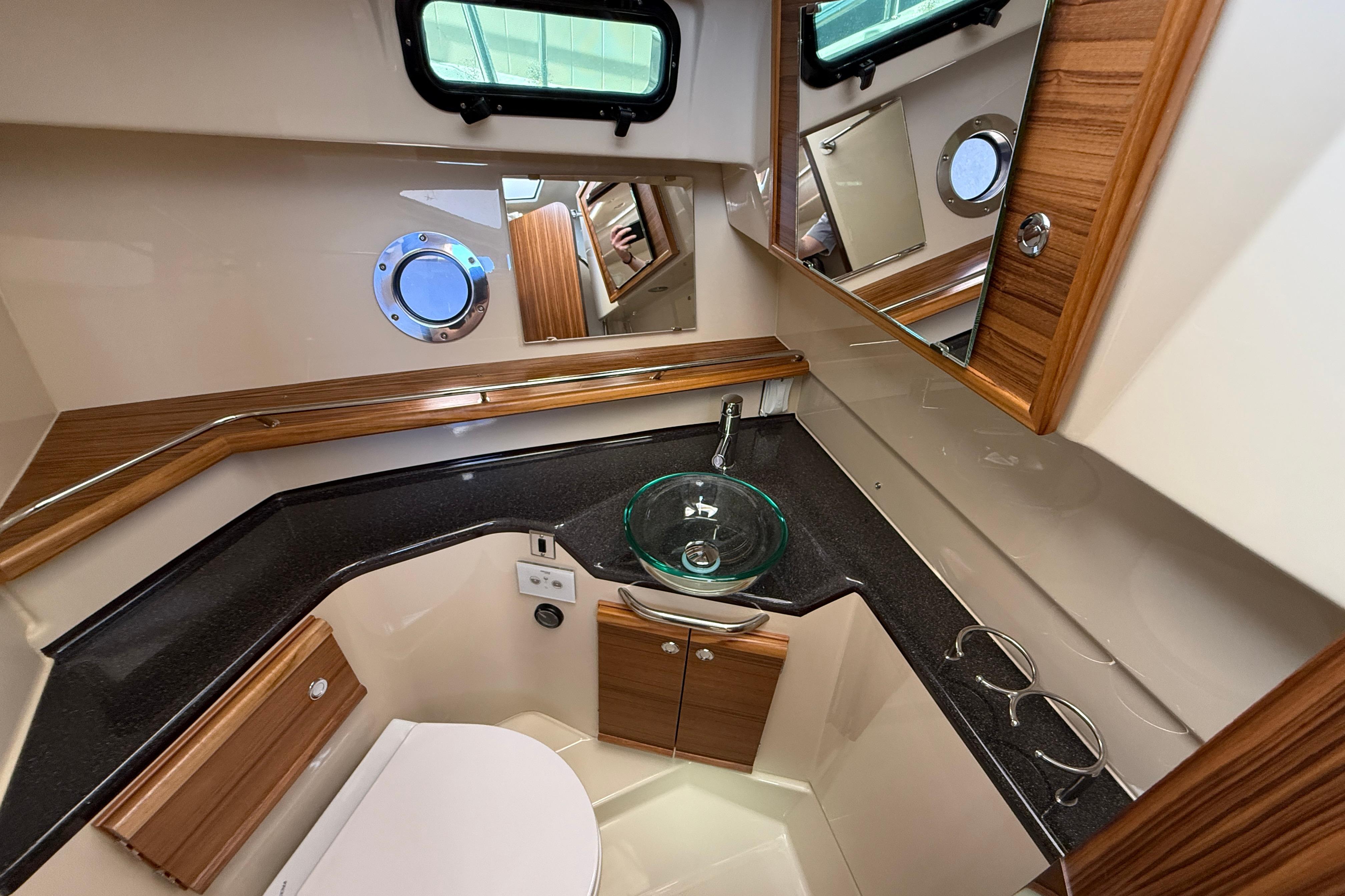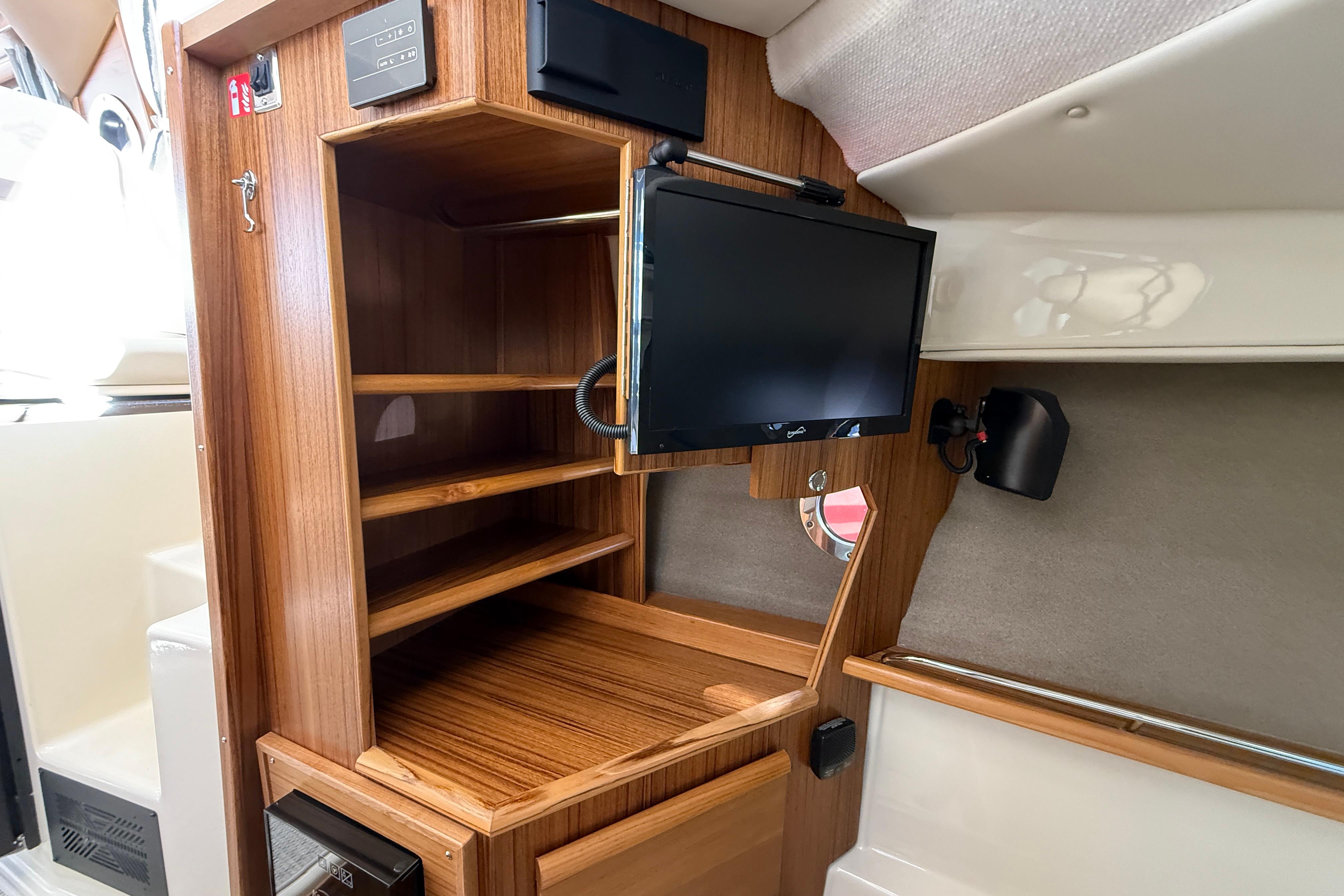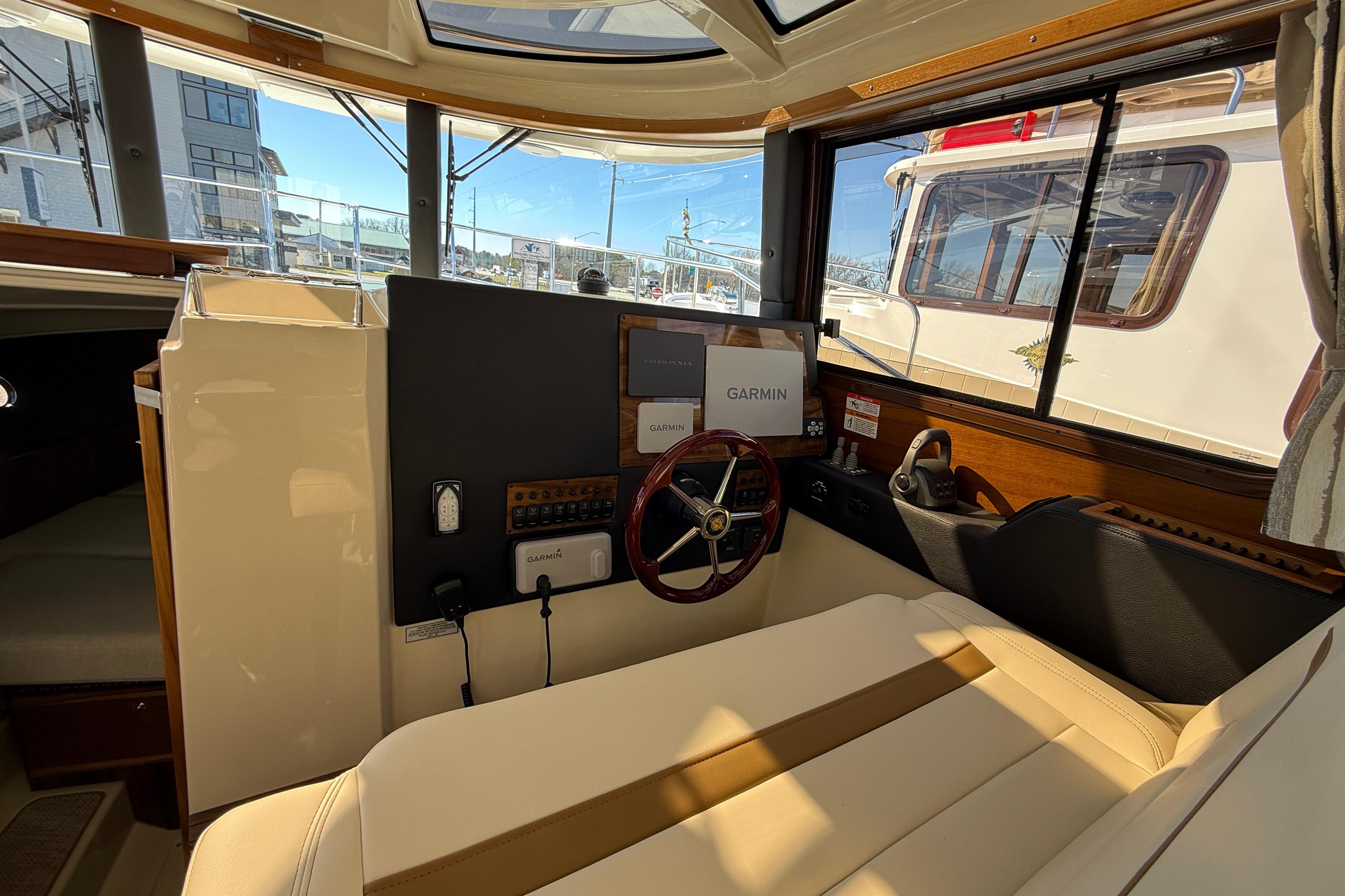 At the helm, the boat comes equipped with Garmin navigation, bow and stern thrusters, autopilot, and modern digital controls that make the R-29CB simple and intuitive to run—even for newer cruisers. It’s an excellent option for anyone looking for a capable cruising boat in a size that’s still easy to manage and economical to operate.