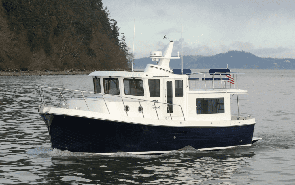 5. Nordic Tugs 34: LOA: 34′ 11″; Beam: 11′ 4″. This tug is celebrated for its sturdy construction and cruising efficiency, ensuring safety and comfort on the waves.