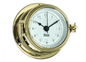 Light, Strong, and Durable, a brass clock will enhance the interior look of your boat. This nautical clock from Weems and Plath has a maintenance-free brass finish and is guaranteed never to tarnish.