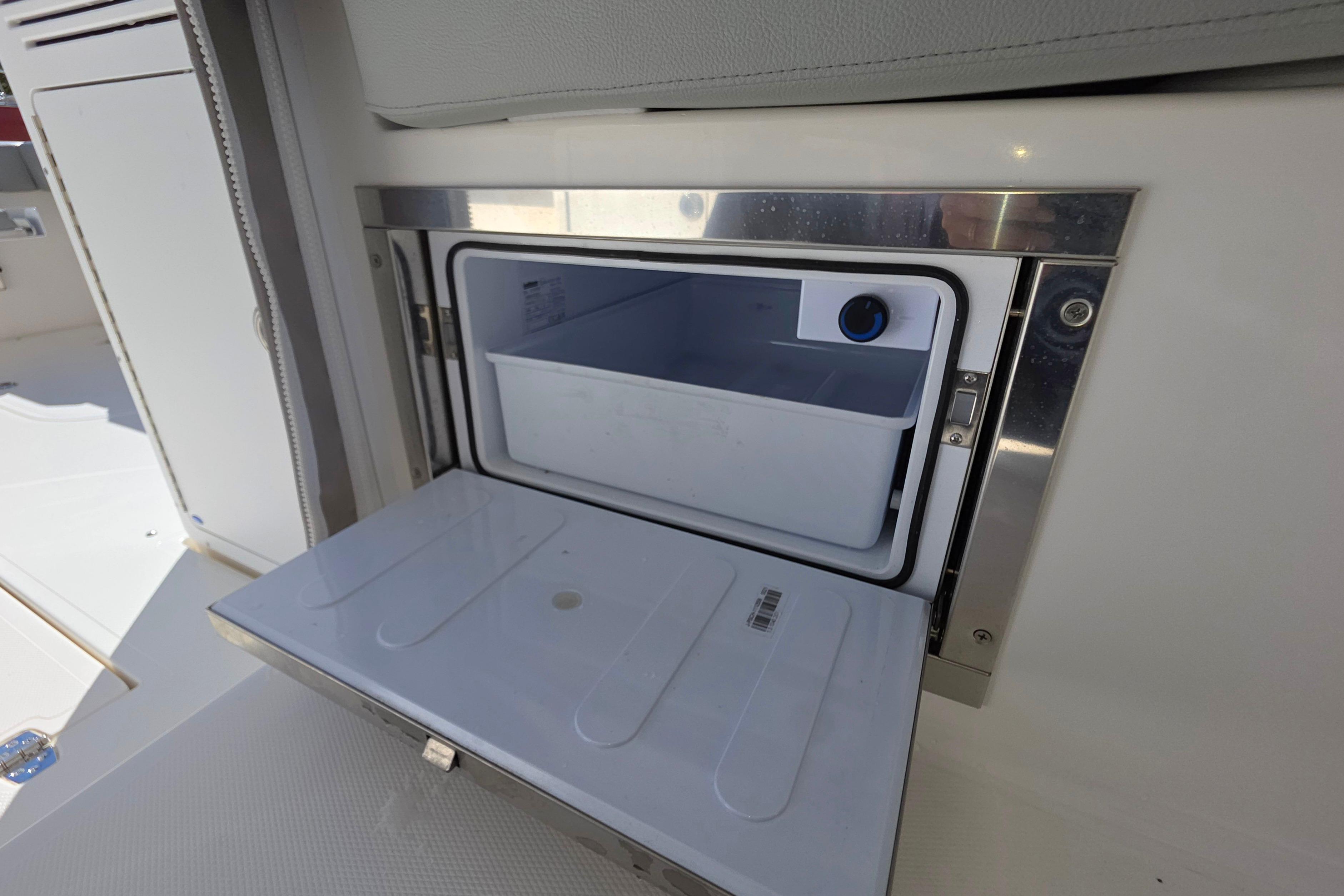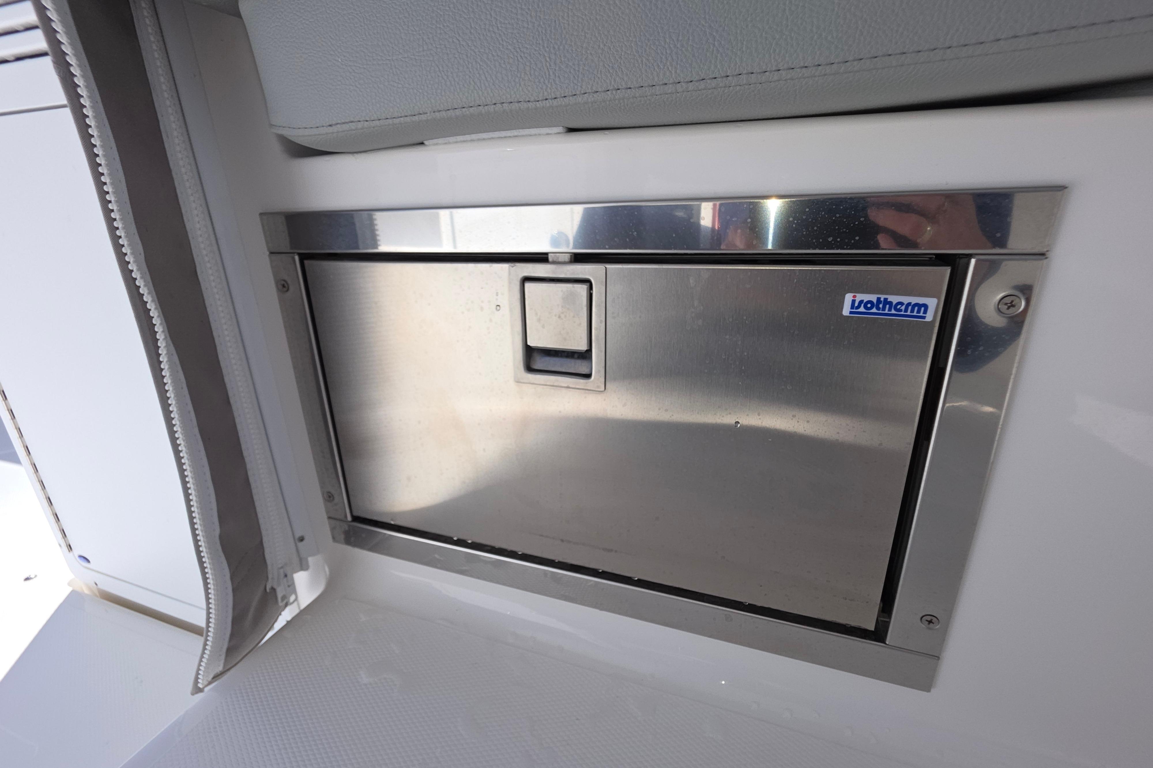 New features place the 315 HT above the rest. Here are a hand full: 1.) We increased fuel to 316 gal and therefore range to approximately 500+ miles pending sea state and speed. 2) Expanded her fish-ability by removal of the L-Shape Settee in the pilothouse, to get the Captain and Crew to the action quicker. 3) We have ample seating on port and *starboard sides aft of the Helm and Companion Seats- (Starboard side is an insulated cooler).4) Standard pull out Refrigerator drawer. 5) Standard Cockpit Grill and Cockpit Sink with storage for grilling tools and fishing tackle. 6) By lengthening of the cockpit, the in-deck fish boxes, individually macerated, are a combined 116 gal. (58 gal. each). 7) Addition of the full transom includes two Live Wells, a 26 Gal Live Well and 19 Gal Live well for specialty baits. 8) Port side cockpit door to land big fish or your swimmers. 9) Optional Full 60” Folding Cockpit Seat. 10) Large walk-through Transom Door. 11) Full Armstrong Swim platform twin engine Bracket. All of these features combine to increase your enjoyment while fishing or cruising the coast. See below for a full specification and option list.