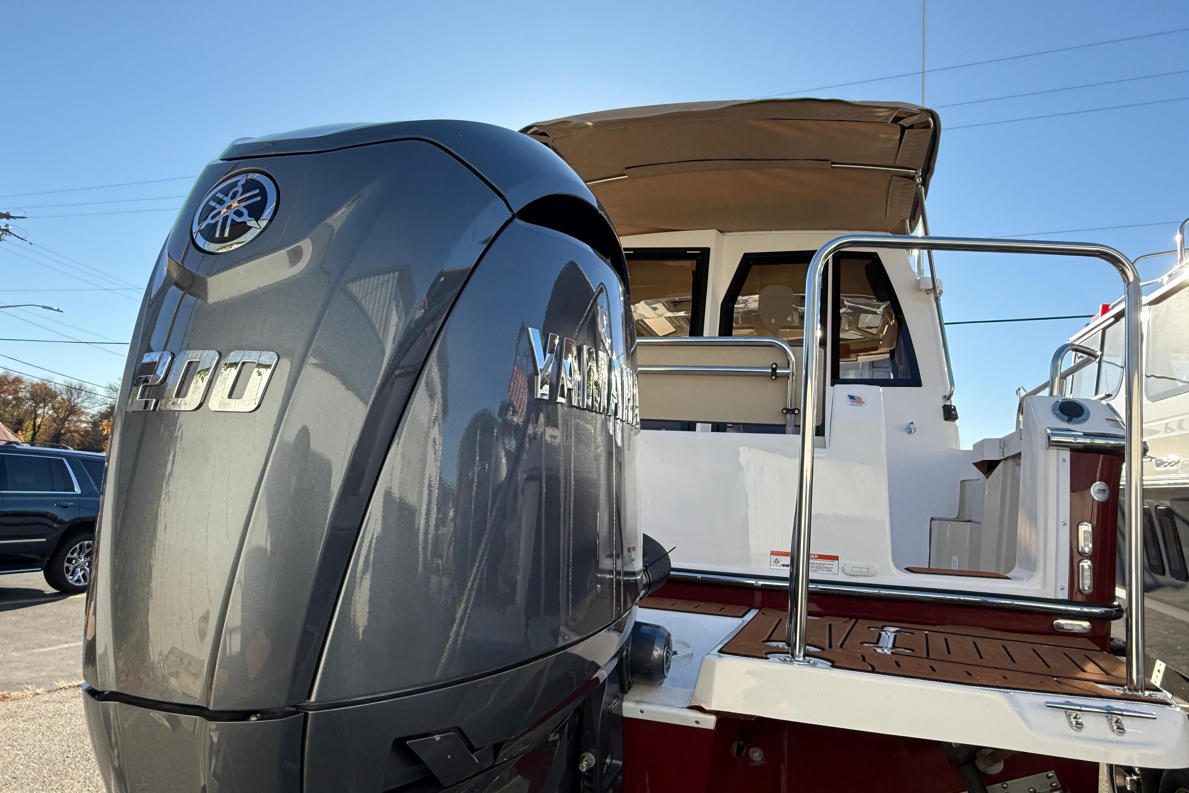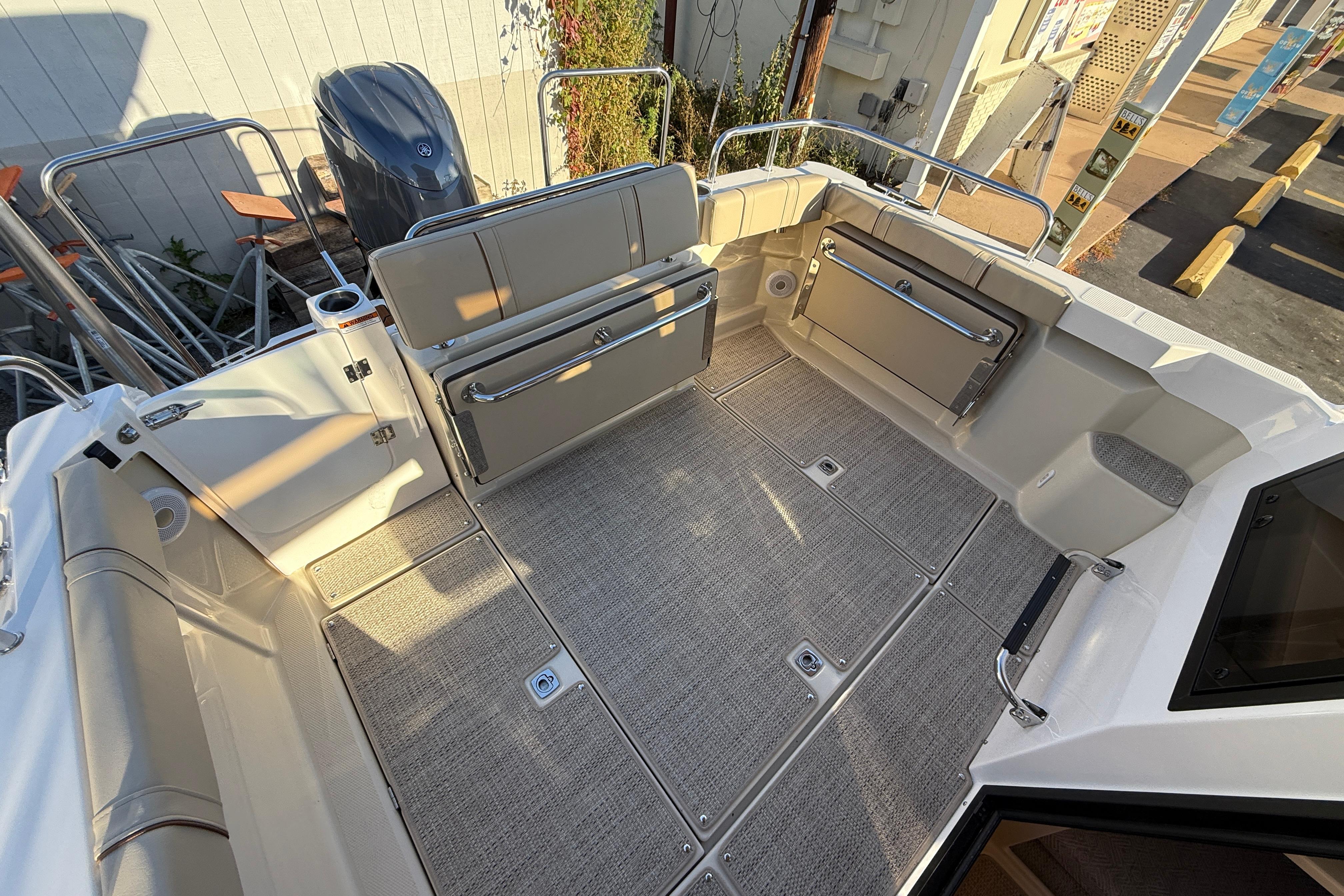 Handling is calm and confident. Powered by a 200 hp Yamaha F200 outboard with single-lever electronic shift/throttle, the R-23 features electric trim tabs, Laminar Flow Interrupters, and an optional bow thruster—all on a trailerable 8’6″ beam hull, combining big-boat ease with nimble control.