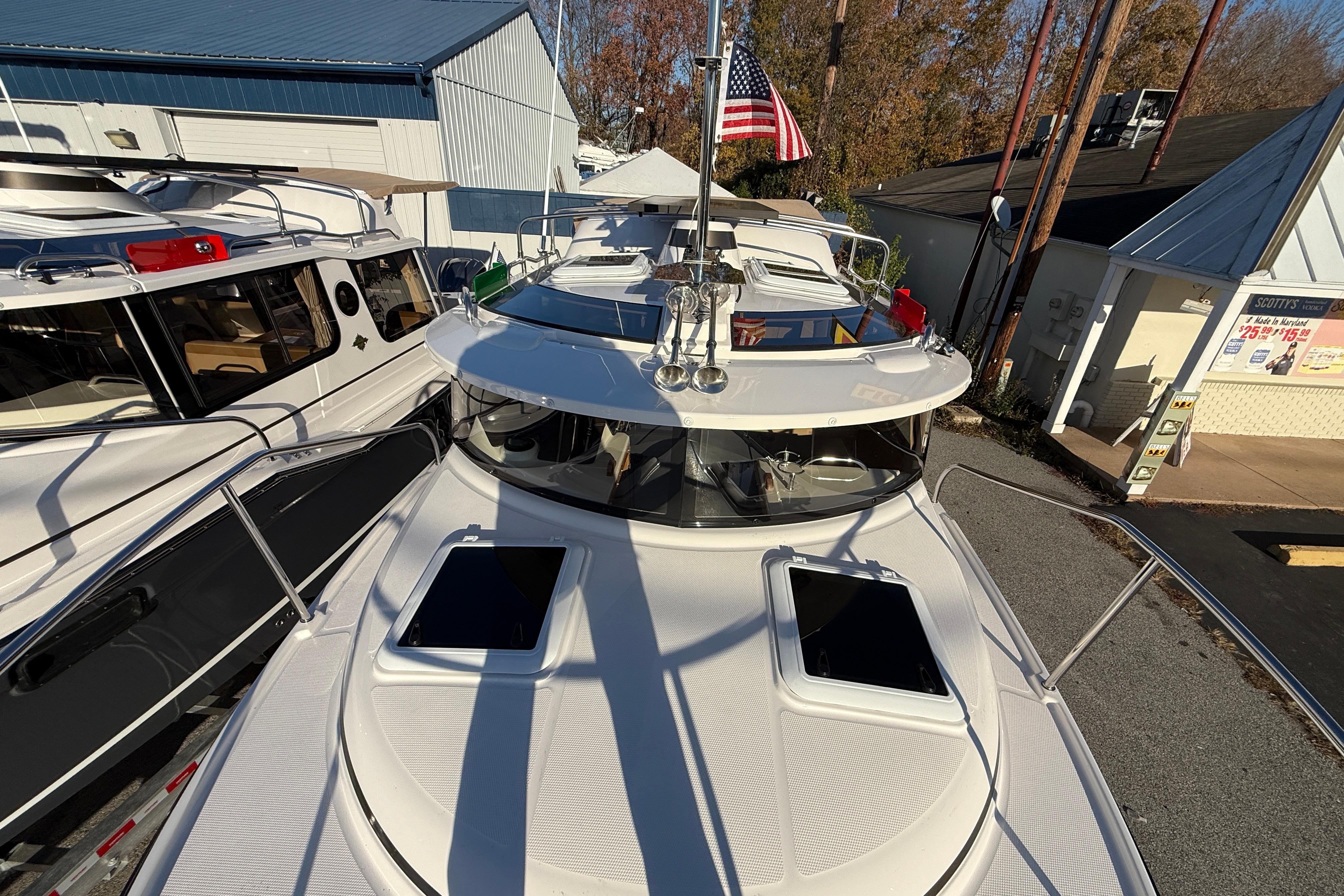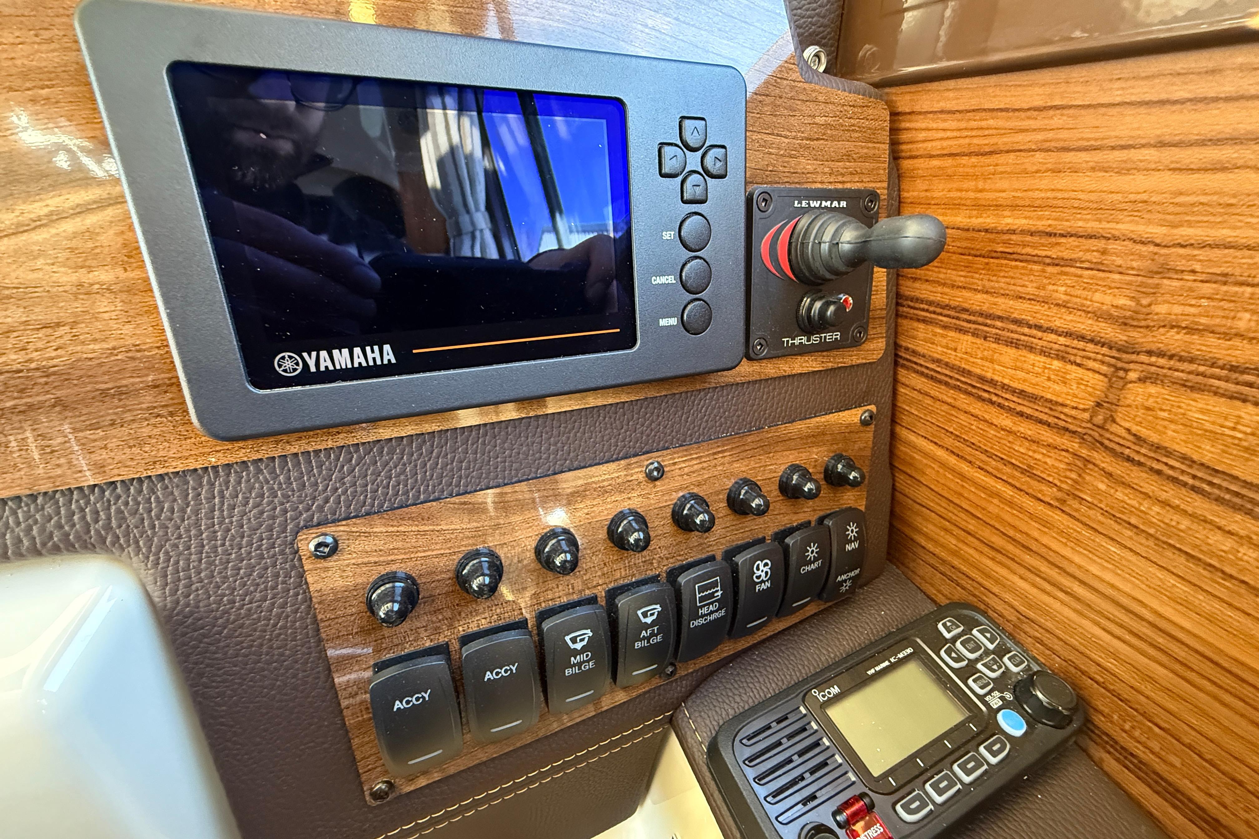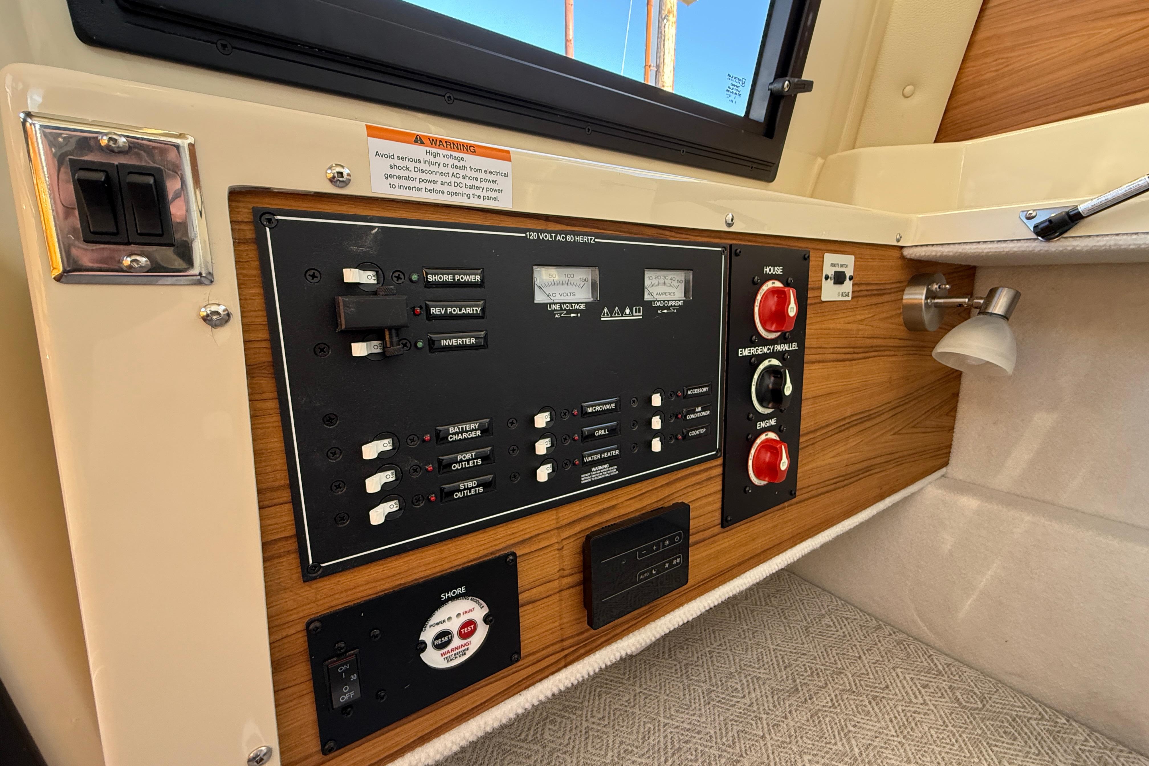 Sleeping and entertaining spaces below are equally refined, with LED lighting, multi-zone stereo, private head with shower, atrium skylights, and plenty of storage—all stitched together in a well-insulated hull with a bonded electrical system for durability and quiet operation.